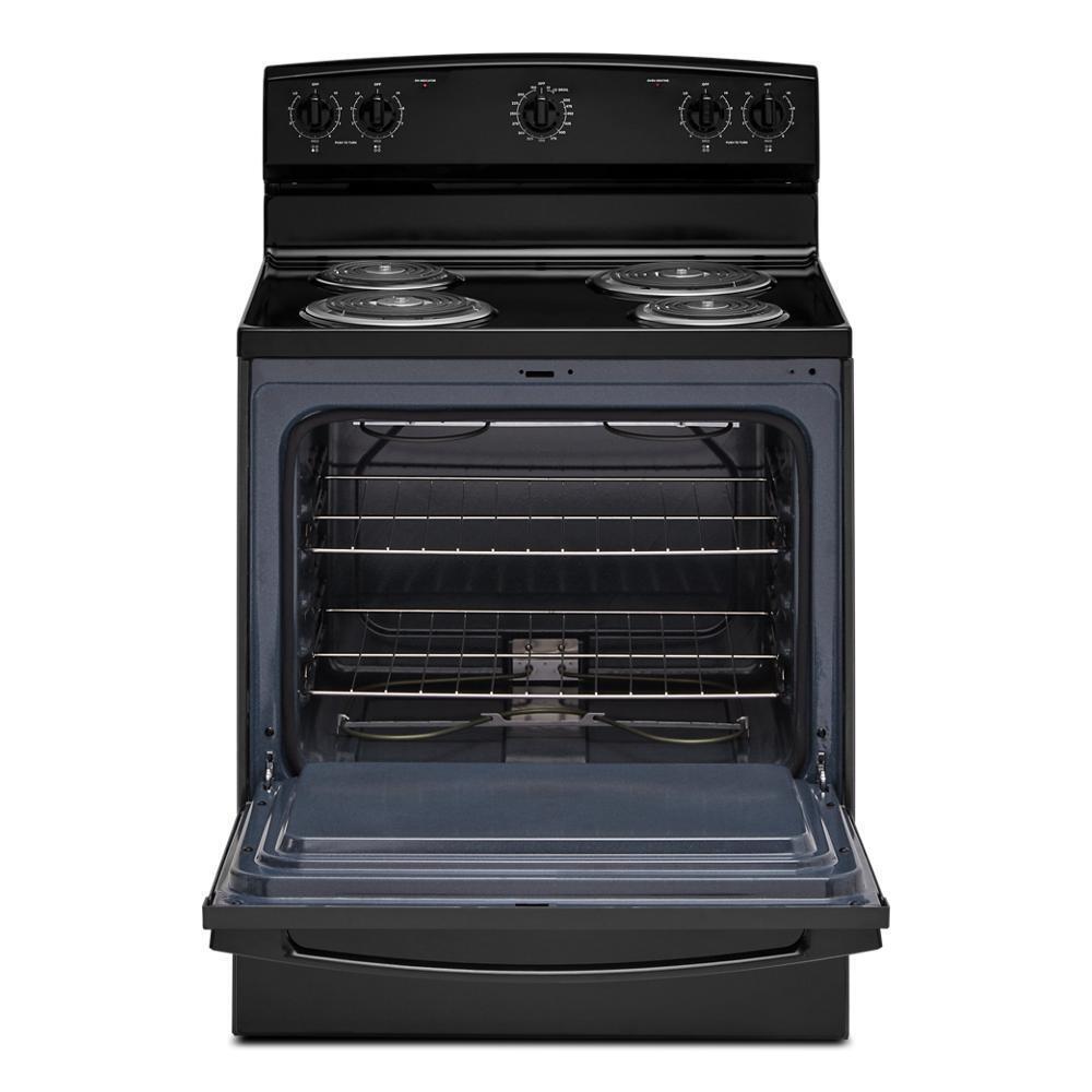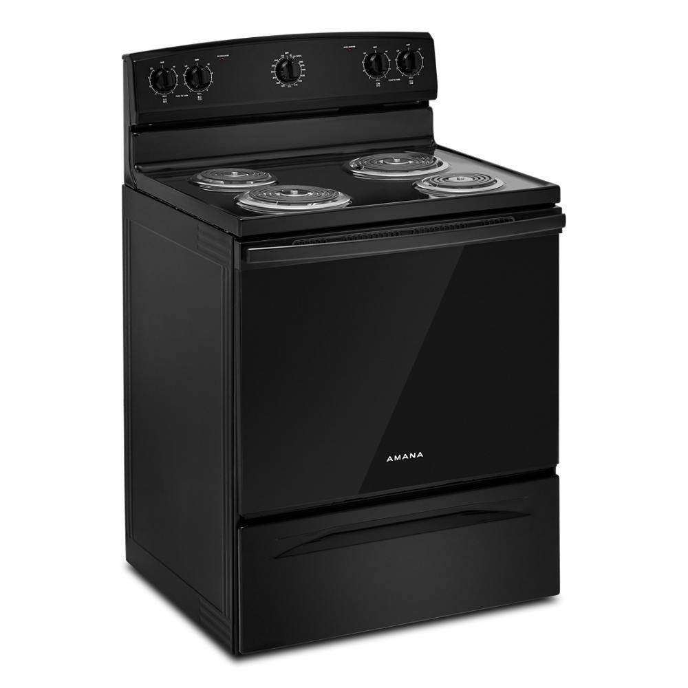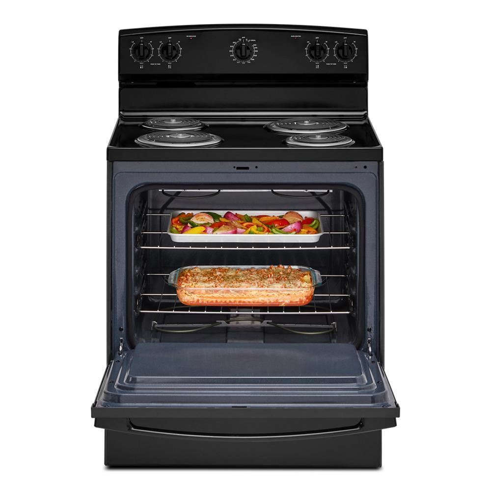 This Amana® electric range makes delicious meals, without difficult clean-up. Splatters won't matter with the Easy-Clean Glass Door that helps messes wipe away easily. The versatile cooktop features the SpillSaver UpSwept™ Cooktop, so you can go ahead and spill the beans, and the large oven capacity means there is room for dinner and dessert to cook at the same time.
