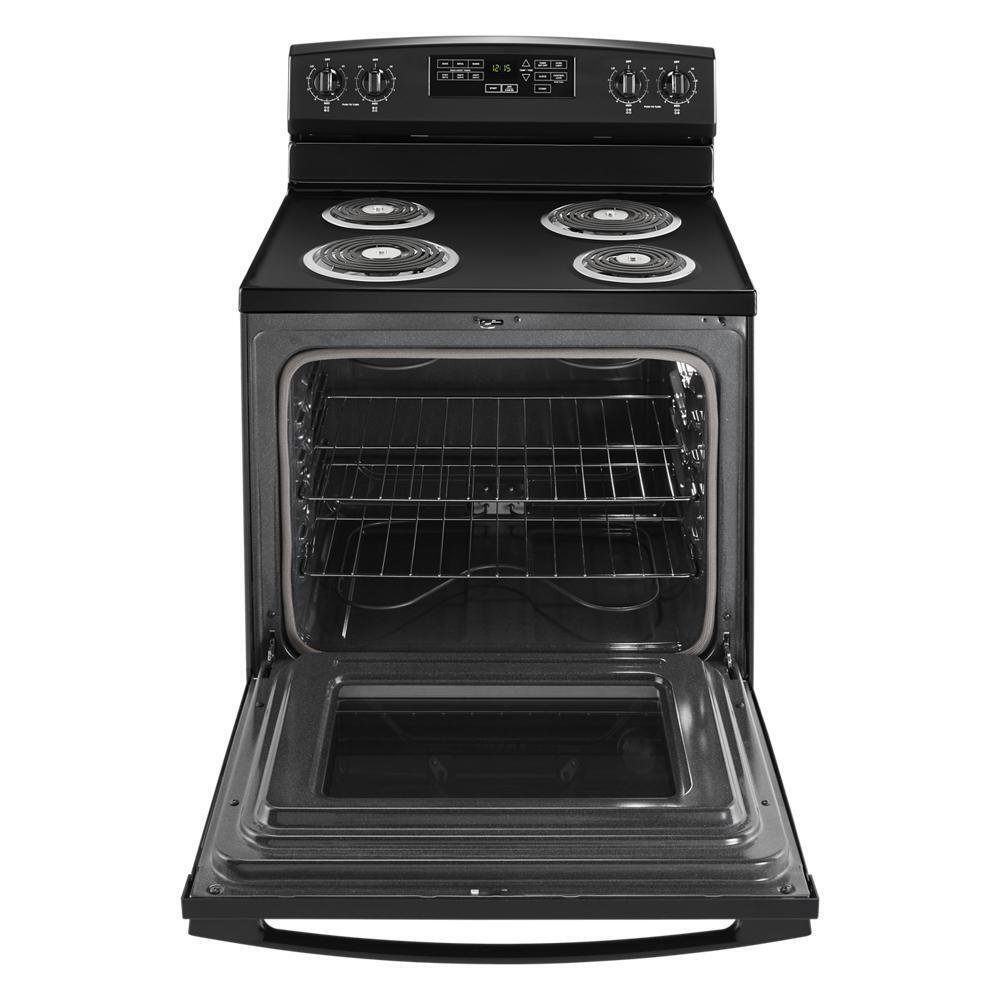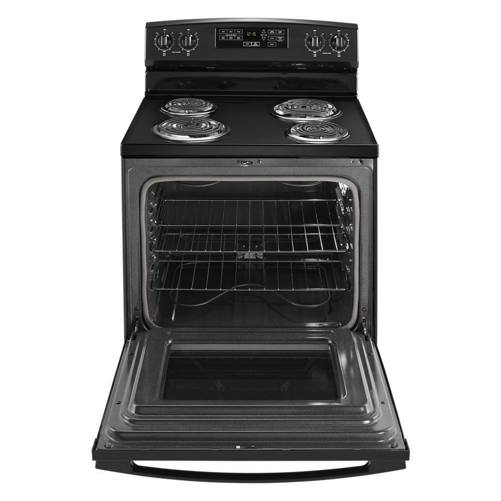 Boil your pasta and simmer the sauce all at once with the Versatile Cooktop on this 30-inch Amana® Electric Range. Plus, start baking dessert at the same time by using the extra-large and easy-to-read Easy Touch Electronic Controls Plus. Or choose a preset temperature setting with Bake Assist Temps. Then when you're ready for cleanup, use the Self-Clean Option to help take care of leftover splatters in the oven.