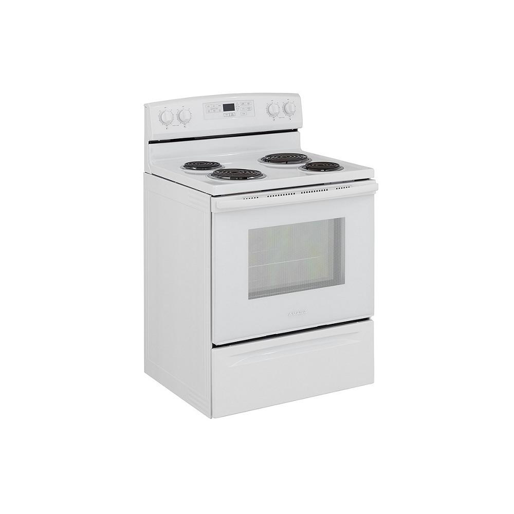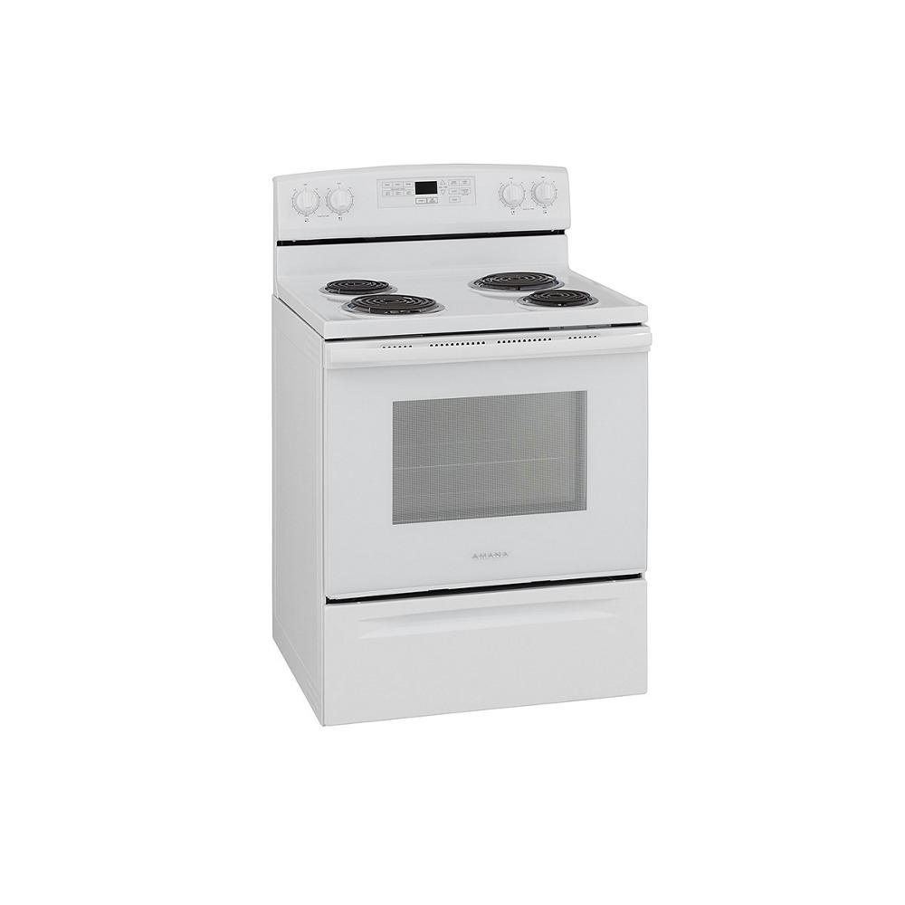 Boil your pasta and simmer the sauce all at once with the Versatile Cooktop on this 30-inch Amana® Electric Range. Plus, start baking dessert at the same time by using the extra-large and easy-to-read Easy Touch Electronic Controls Plus. Or choose a preset temperature setting with Bake Assist Temps. Then when you're ready for cleanup, use the Self-Clean Option to help take care of leftover splatters in the oven.