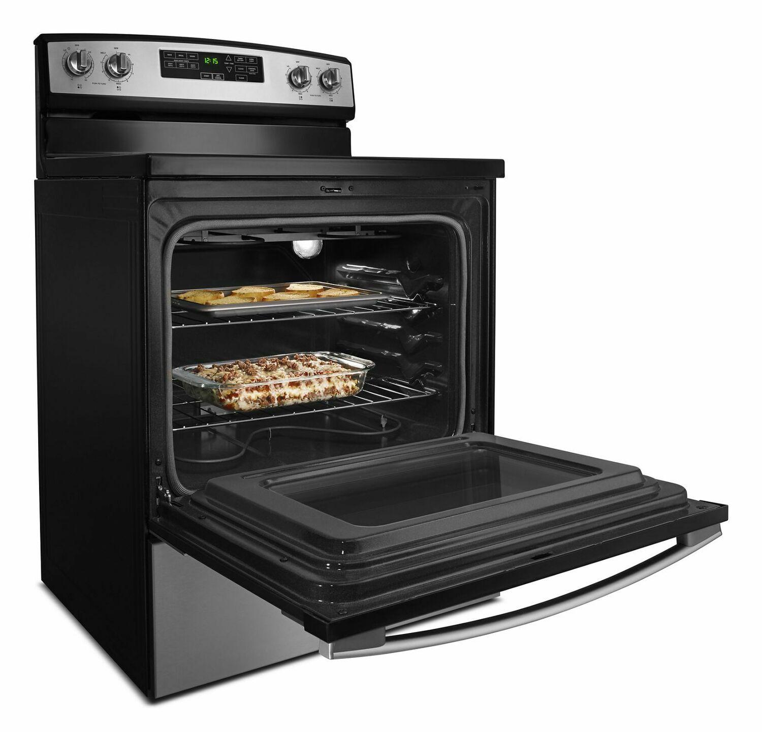 This 30-inch Amana® Electric Range comes with a Versatile Cooktop featuring up to 3,000 watts, giving you more flexibility to turn up the heat! You can also set bake or broil temperatures with our Easy Touch Electronic Controls Plus. Or choose a preset temperature setting with Bake Assist Temps. And when you're finished cooking, use the Self-Clean Option to help clean up the buildup inside your oven.