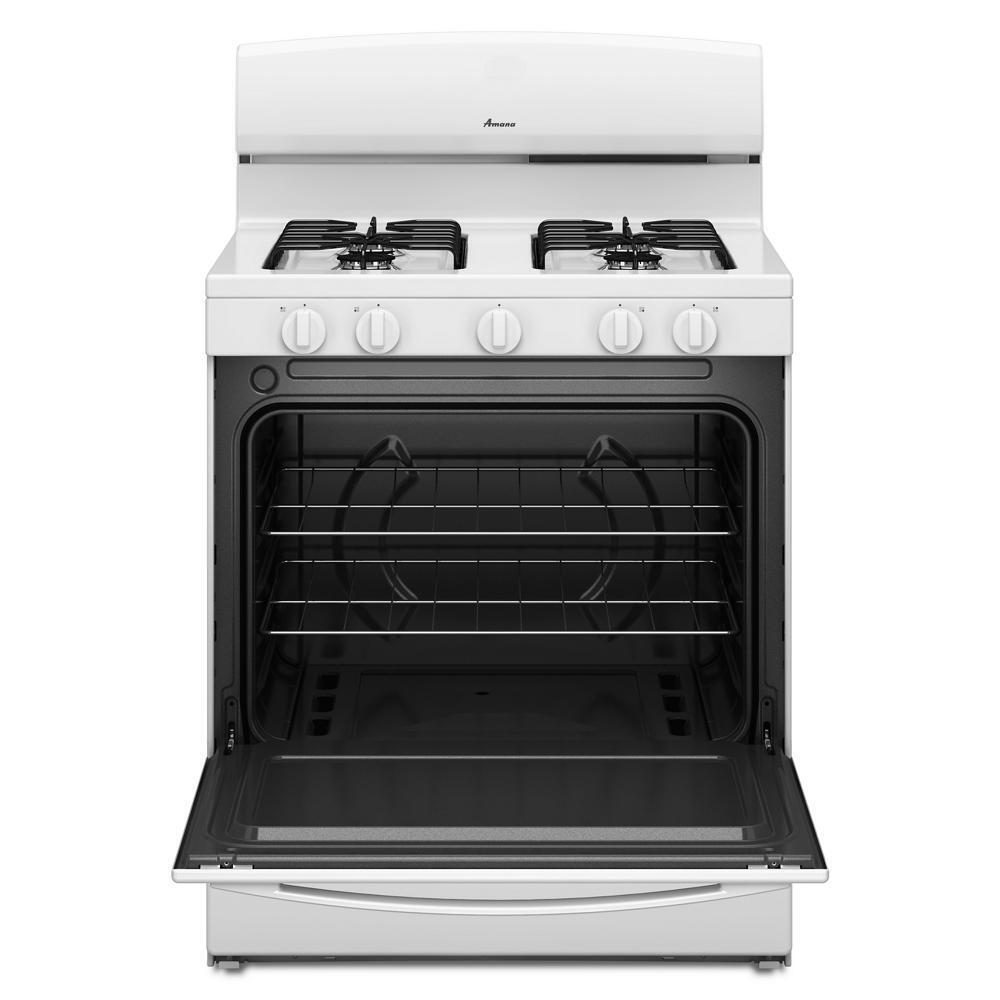 This 30-inch Amana® Gas Range features a Versatile Cooktop, so you can cook everything from instant noodles to a big pot of black bean chili. The 5.1 Cu. Ft. Capacity lets you fit more favorites, and an EasyAccess™ Broiler Door is not only easy to reach, but it also conveniently fits wide dishes.