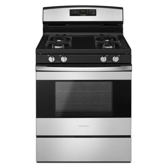 This 30-inch Amana® Gas Range with 5.0 cu. ft. Capacity bring cooking and convenience together with Bake Assist Temps. Simply choose a preset temperature setting to get started. And if you need to delay dinner, use the Warm Hold feature so that your food is still ready when you are.