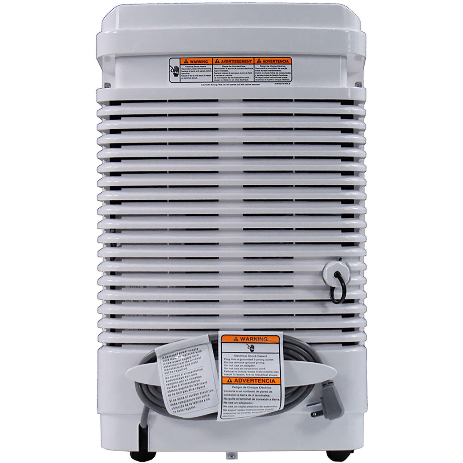 - Portable dehumidifier removes up to 48 pints of moisture from the air per day