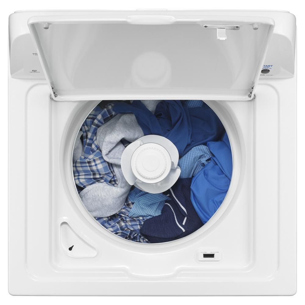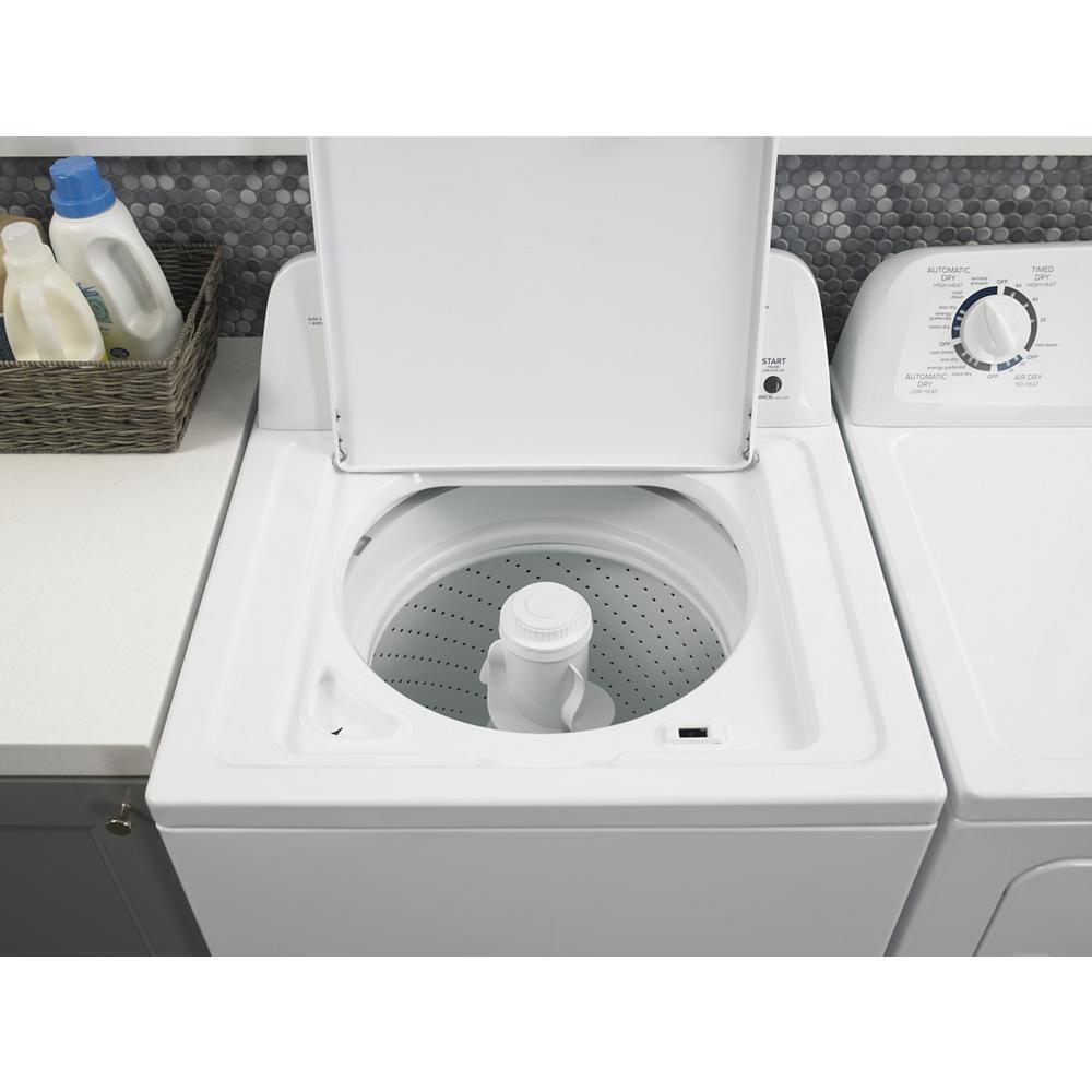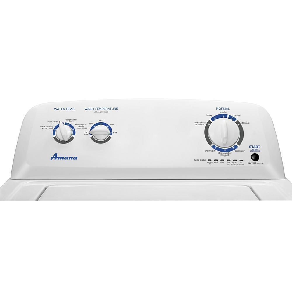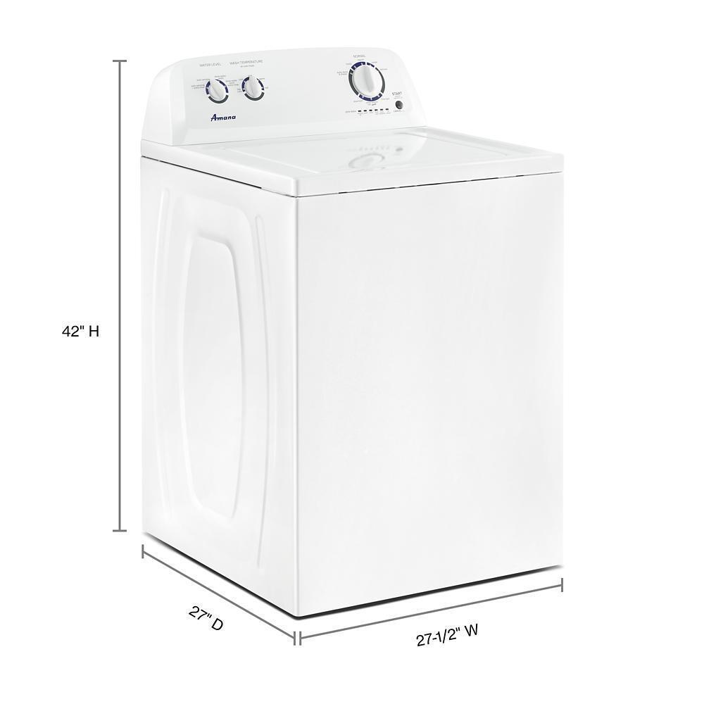 This 3.5 cu. ft. Amana® Top-Load Washer delivers a thorough clean with a Dual Action Agitator, which rolls clothes through the bottom of the wash basket. Its durable Porcelain Tub helps protect favorites from snags, while the Deep Water Wash Option adds the maximum amount of water for your laundry load, so you can clean with confidence.
