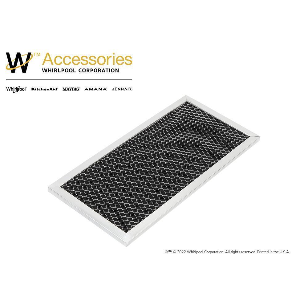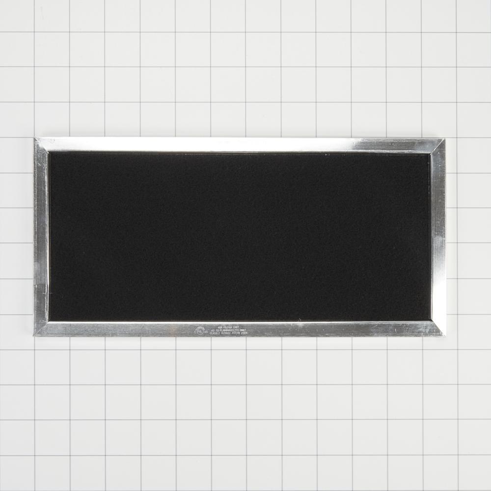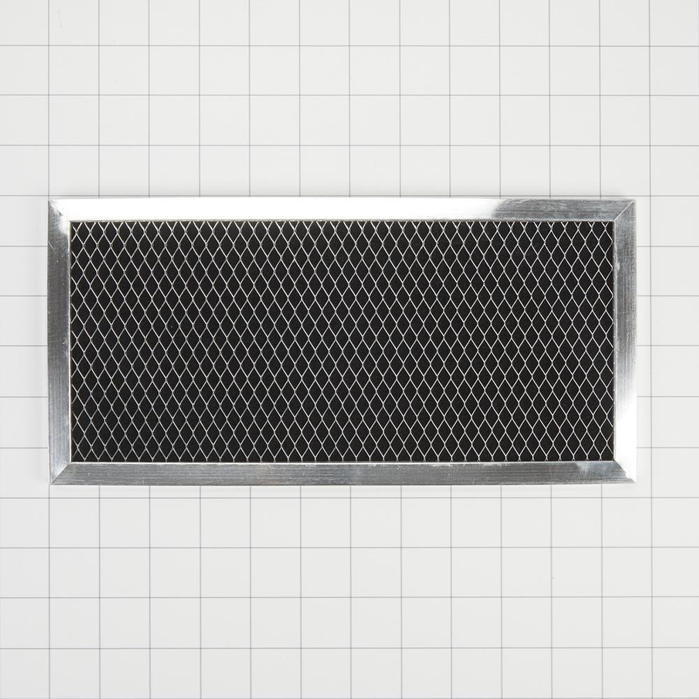 This Over-The-Range Microwave Charcoal Filter traps grease from the exhaust air of your oven to prevent it from entering the blower and vent, potentially causing build-up and damage. If your current filter can no longer be cleaned and is not functioning properly, you should replace it promptly with this item. This chrome filter is a universal accessory that can be used across several brands; check to see if your model number is compatible. Size: approx. 12" L x 6" W. Replacing this part will require no disassembly or repair experience.