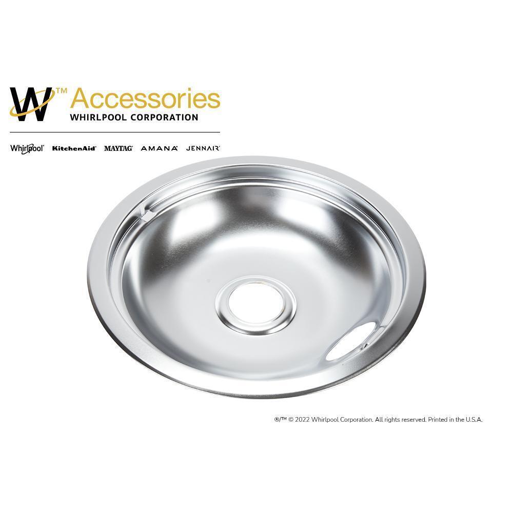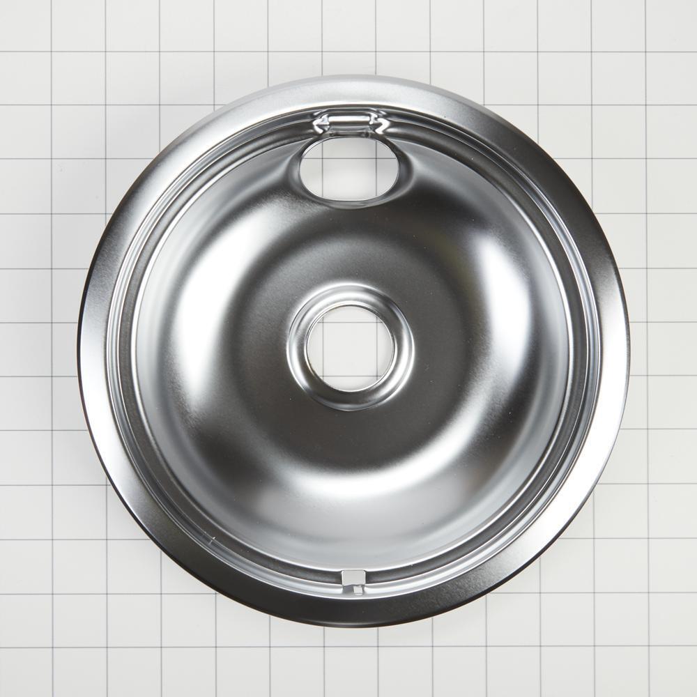 The Electric Range Round Burner Drip Bowl, Chrome, helps contain splatters and spills while you use your cooktop. If your current burner pans are damaged or can no longer be cleaned, replacing this accessory may alleviate the issue. This drip bowl is dishwasher safe and designed to be use specifically with 8" electric coil burners. Each drip bowl sold seperately. Installing this part will require no tools, disassembly or repair experience. Remember to unplug the range or shut off the house circuit breaker for the appliance before installing this part.