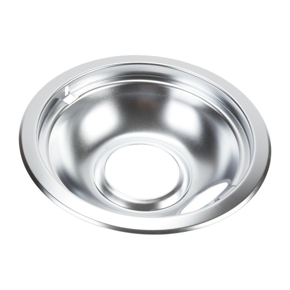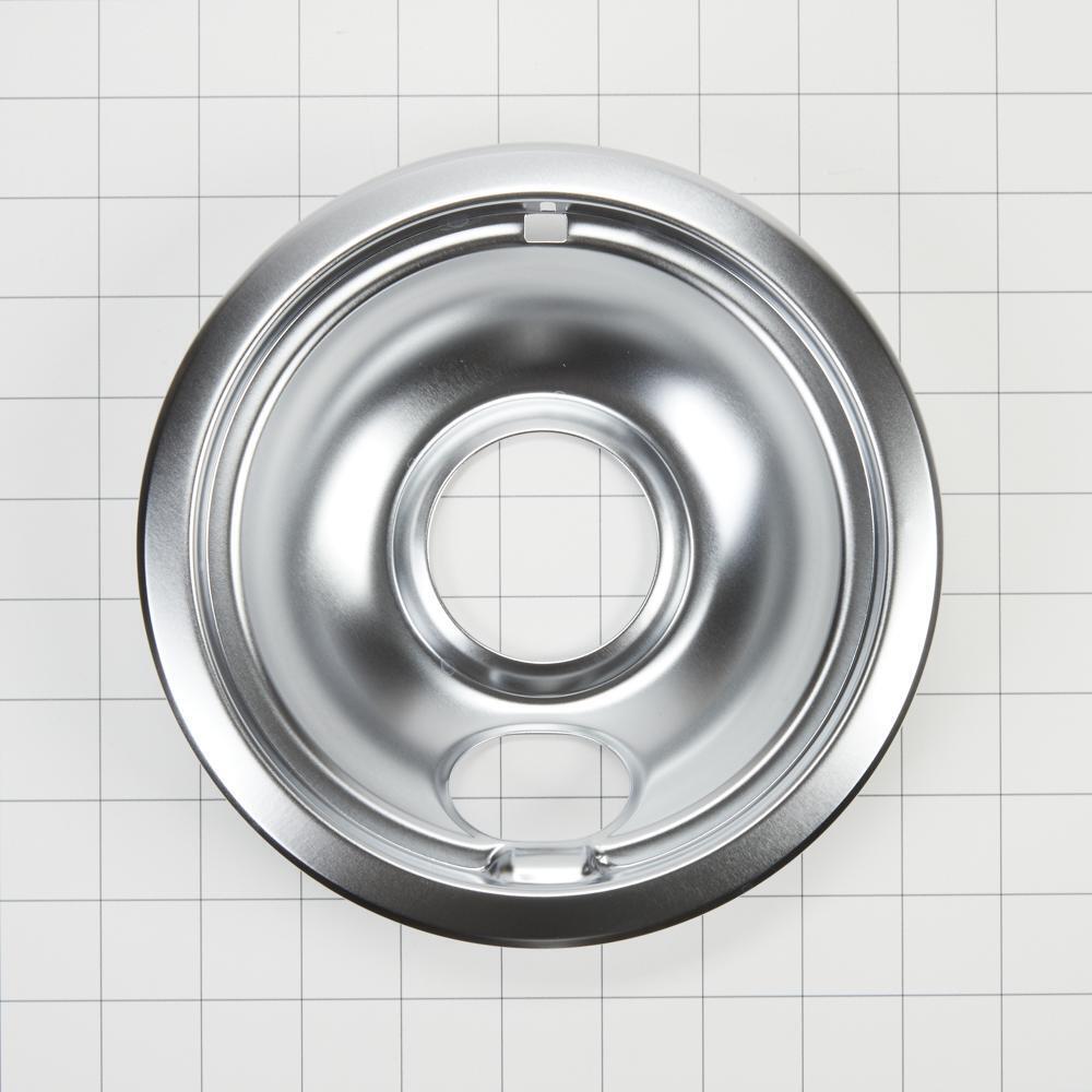 The Electric Range Round Burner Drip Bowl helps contain splatters and spills while you use your cooktop. If your current burner pans are damaged or can no longer be cleaned, you can easily replace them with this part. This drip bowl is stainless steel in color and designed to be used specifically with 6" electric coil burners. Sold separately. Installing this part will require no tools, disassembly or repair experience. Remember to unplug the range or shut off the house circuit breaker for the appliance before installing this part. Recommended Item: The 8" Drip Bowl (item WPW10196405) is also available for purchase.
