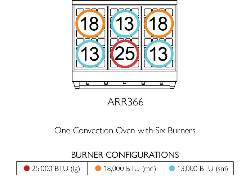 - Three sizes of burners to serve your everyday needs: