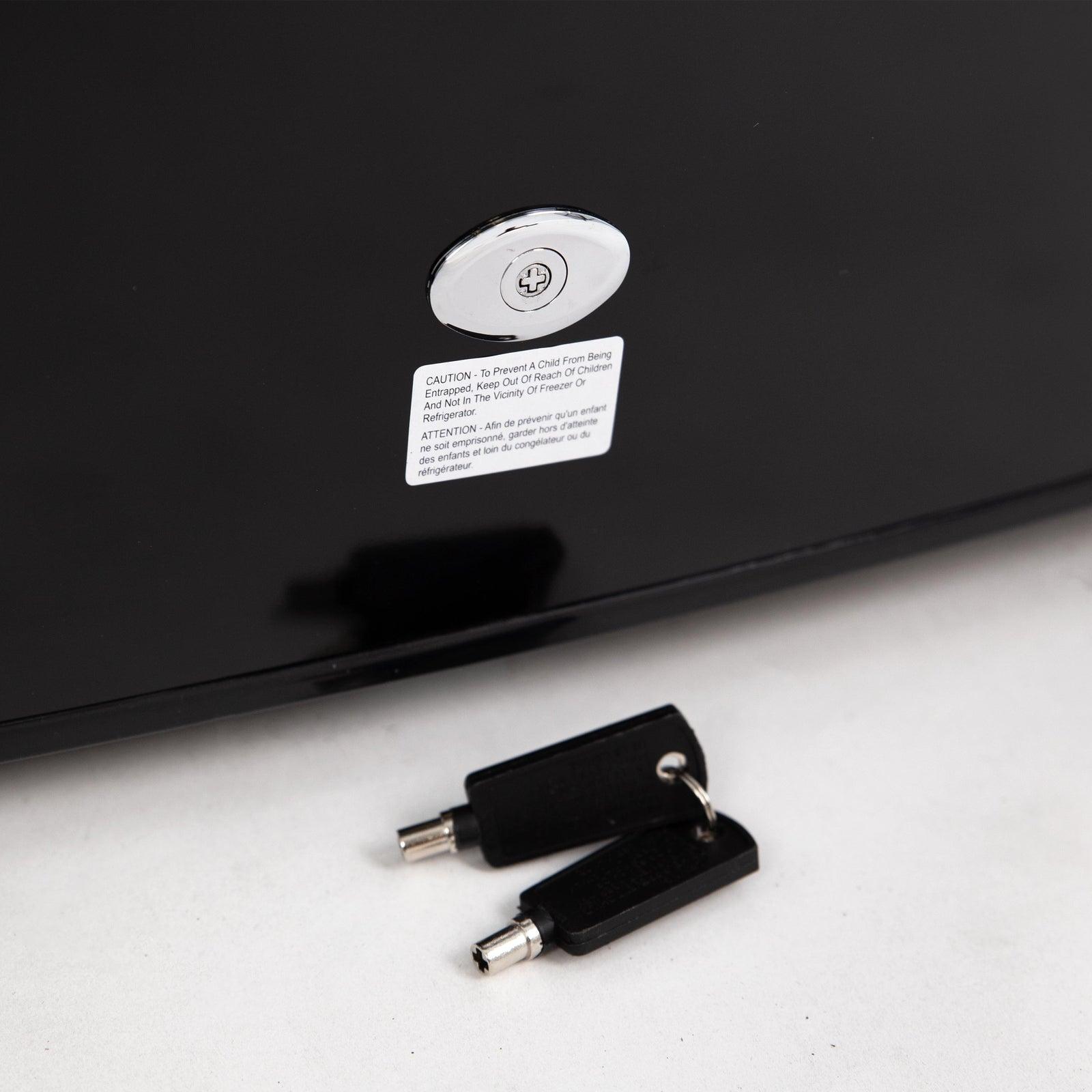 Keep your snacks and favorite beverages close by in the compact, 4.4 cubic foot refrigerator from Avanti. The perfect lockable mini fridge for the office, dorm, man cave, she shed, bar, bedroom, or anywhere you need a little extra refrigerator space. The door shelves can accommodate 2-liter and gallon bottles and six 12 oz. cans, as well as other drinks and condiments. Use the adjustable, removable glass shelving to arrange salads, fruits, snacks, and other foods for easy access throughout the day. This compact fridge features automatic defrost so your foods remain fresh and cold. Select the right settings for your items with the full range temperature control.