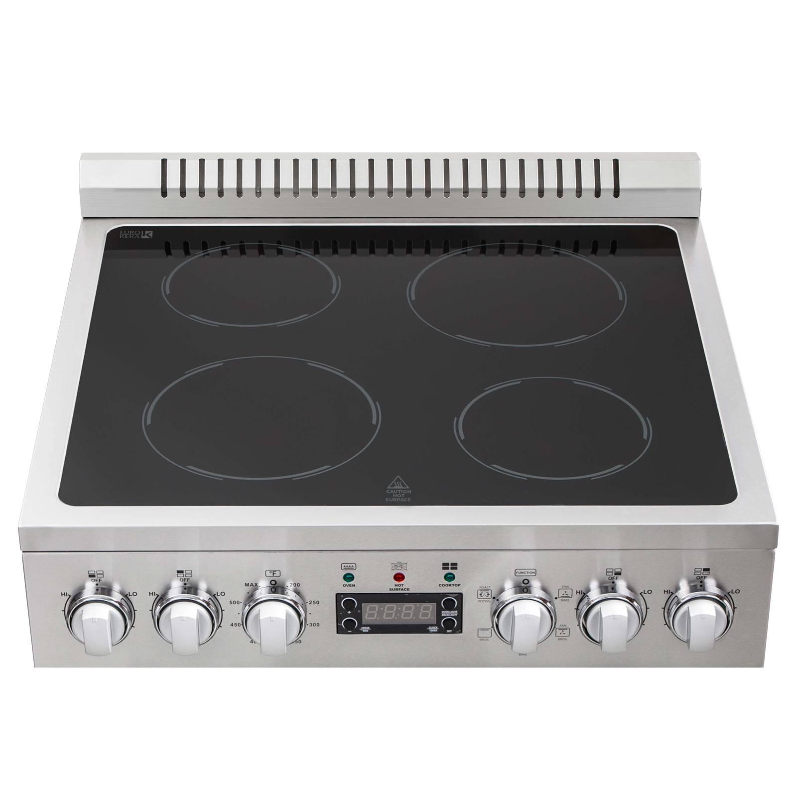 - Black Euro-Kera glass top with 4 cooking zones