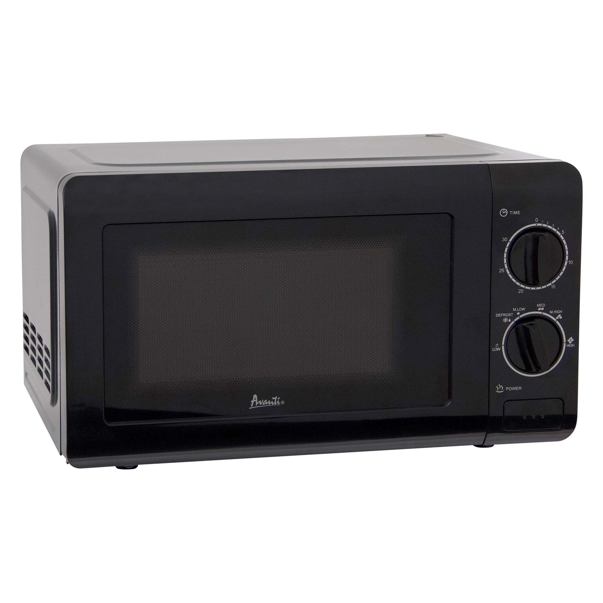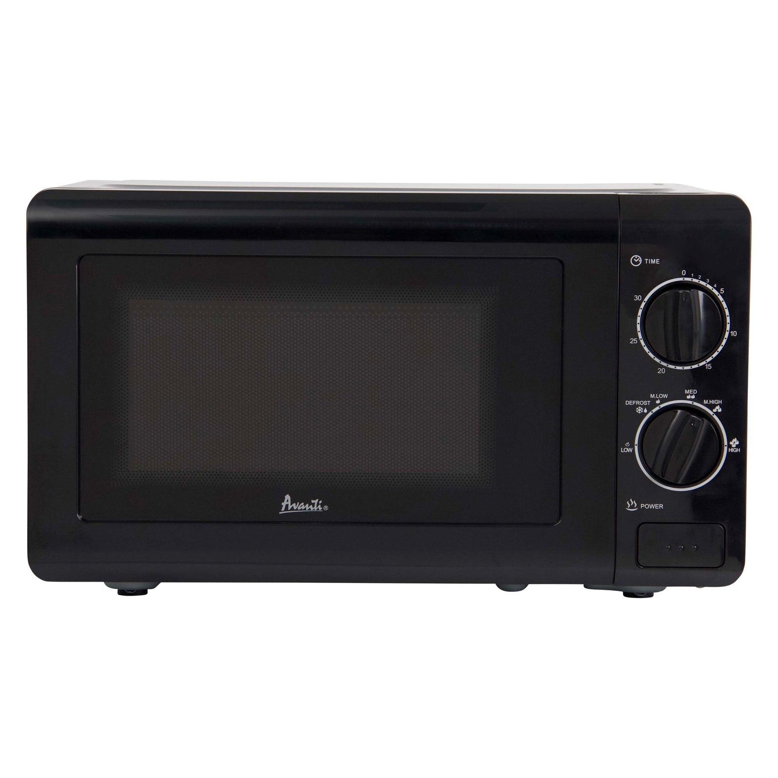 Save counter space with this 0.7 cubic foot microwave oven from Avanti. Its compact size makes it the perfect countertop microwave for the dorm, man cave, office, studio apartment, RV, tiny home, rental room, condo, vacation home or anywhere you need to cook food fast. This easy-to-use microwave features 700 watts of cooking power. Easy-to-use mechanical dials allow you to set the timer from one to 30 minutes and choose from five power levels (low, med-low, medium, med-high, high). This microwave also has a defrost setting, a removable glass turntable and a push-button door release. Maximize your counter space with this small microwave oven. Covered by the Avanti One-Year Limited Warranty.