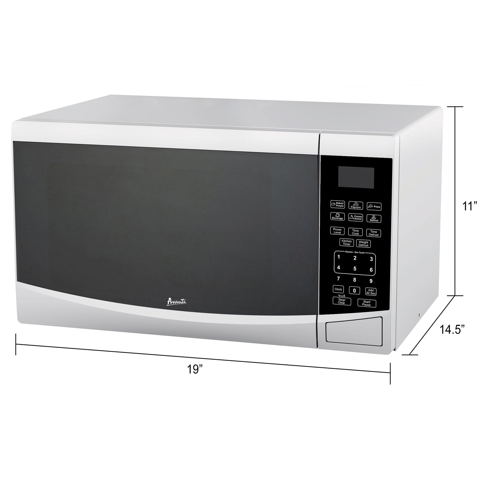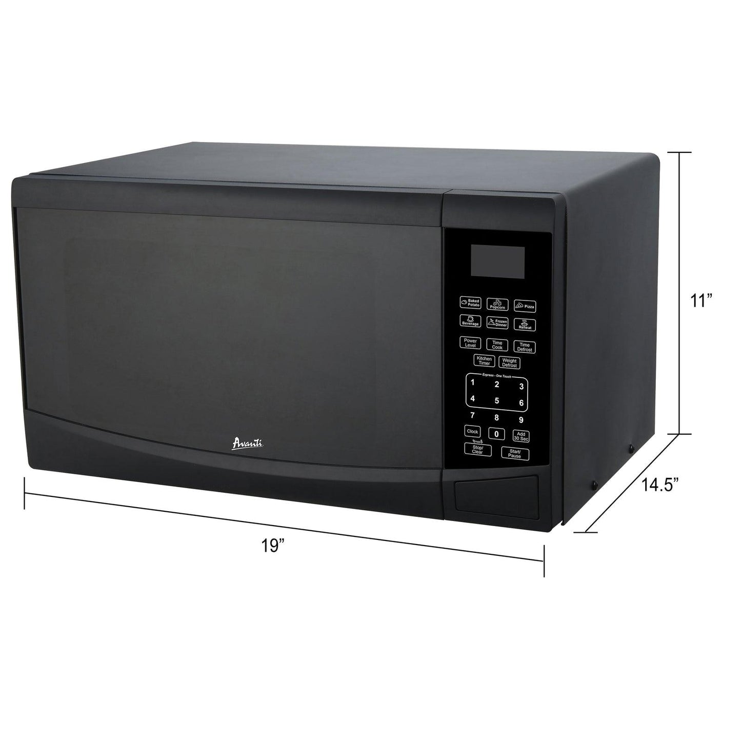 Save counter space with this 0.9 cubic foot microwave oven from Avanti. Its compact size makes it the perfect countertop microwave oven for the dorm, man cave, office, studio apartment, RV, tiny home, rental room, condo, vacation home or anywhere you need to cook food fast. This small microwave features 900 watts of cooking power and 10 power levels for heating and defrosting. Easily cook your favorites with the touch of a button with six one-touch, pre-set cooking modes for potatoes, popcorn, pizza and more. A turntable with a glass tray helps ensure your food cooks evenly. Maximize your counter space with this compact microwave oven. Covered by the Avanti One-Year Limited Warranty.