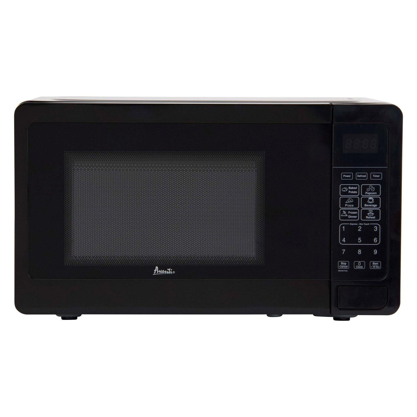 Save counter space with this 0.7 cubic foot microwave oven from Avanti. Its compact size makes it the perfect countertop microwave oven for the dorm, man cave, office, studio apartment, RV, tiny home, rental room, condo, vacation home or anywhere you need to cook food fast. This small microwave features 700 watts of cooking power and 10 power levels for heating and defrosting. Easily cook your favorites with the touch of a button with six one-touch, pre-set cooking modes for potatoes, popcorn, pizza and more. A turntable with a glass tray helps ensure your food cooks evenly. Maximize your counter space with this compact microwave oven. Covered by the Avanti One-Year Limited Warranty.
