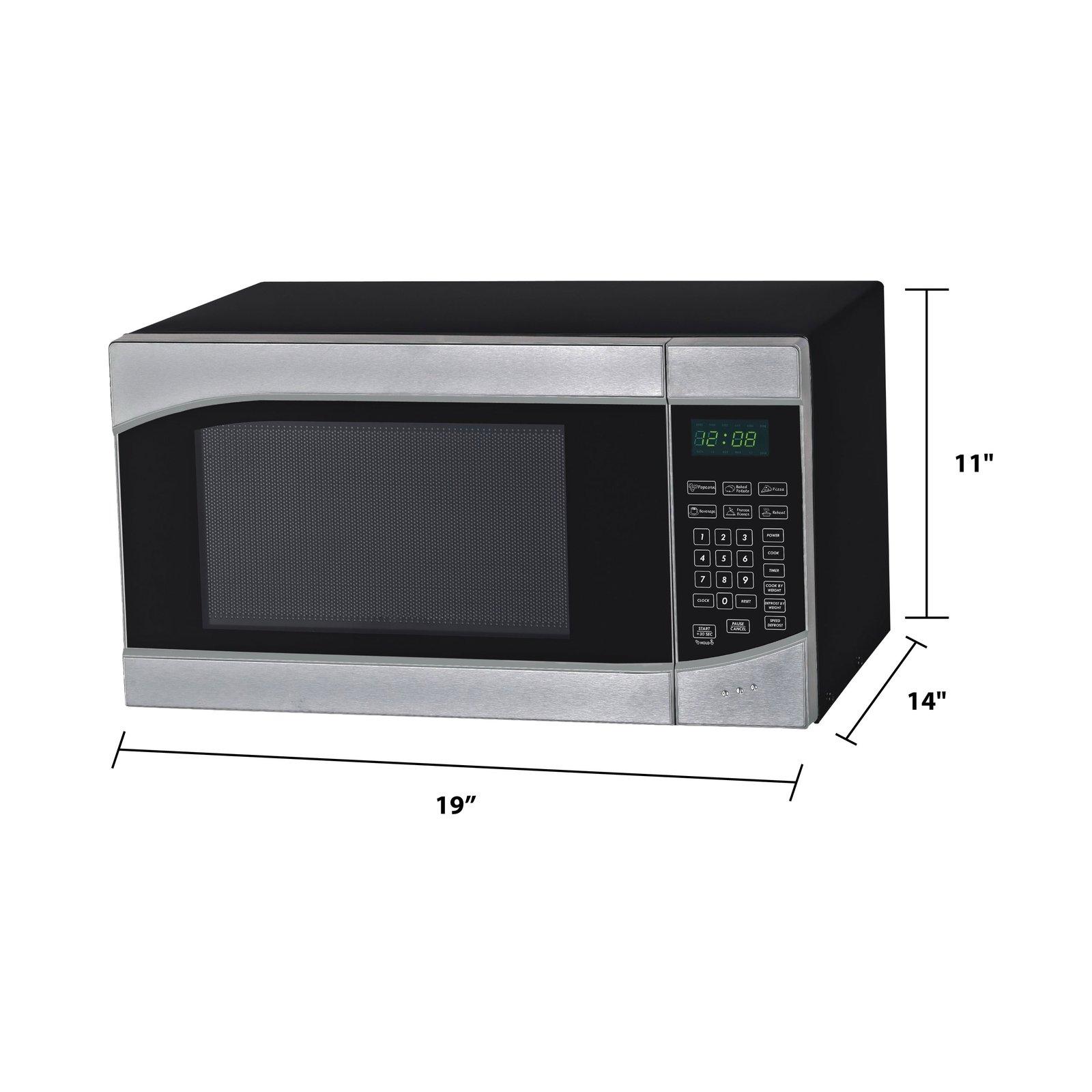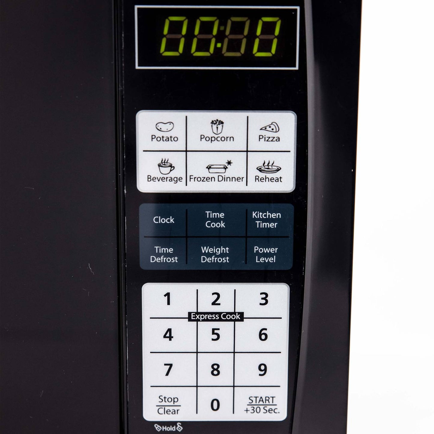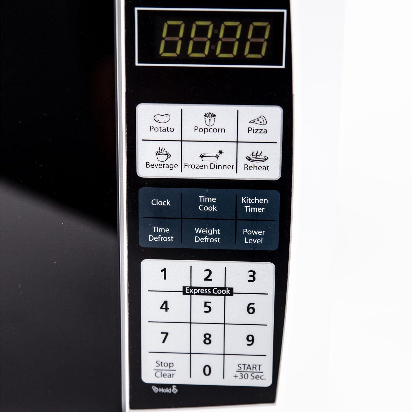 - 6 one-touch, pre-set cooking modes (Potato, Popcorn, Pizza, Beverage, Frozen Dinner, Reheat)