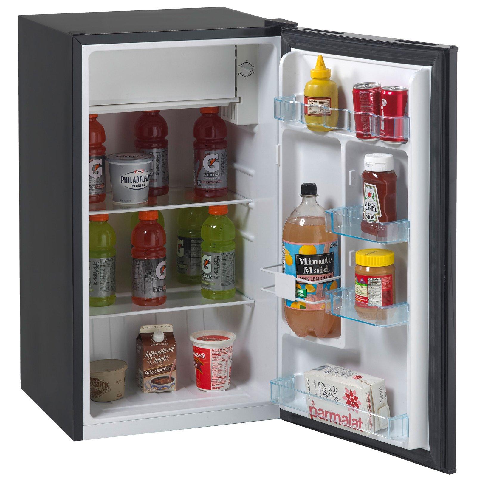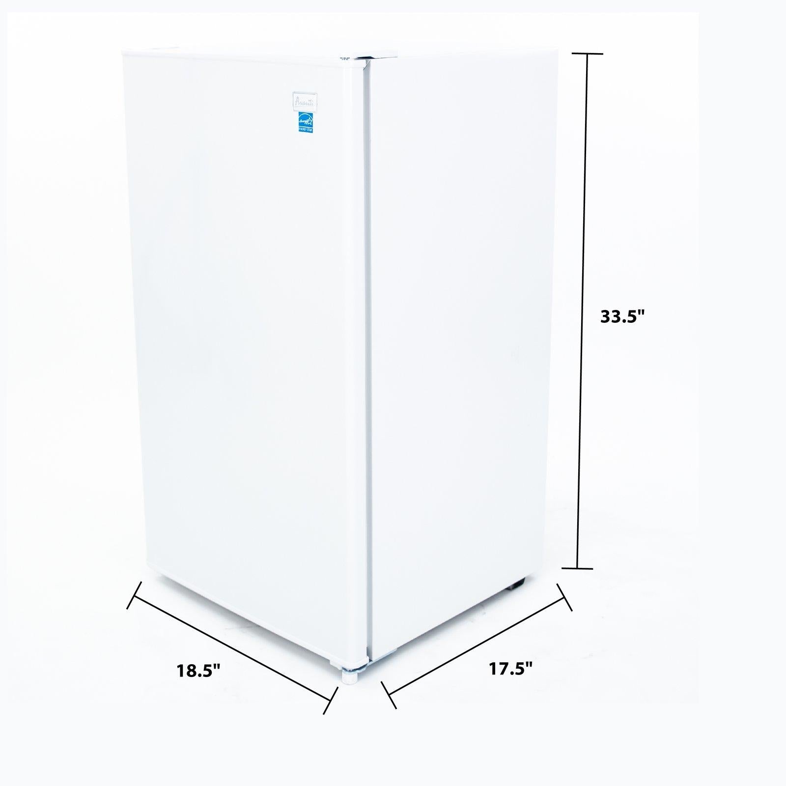 Keep your snacks and favorite beverages close by in the 3.2 cubic foot refrigerator from Avanti. The perfect mini fridge for the office, dorm, man cave, she-shed, bar, bedroom, or anywhere you need a little extra refrigerator space. The adjustable door bins can accommodate 2-liter bottles as well as other drinks and condiments. Use the adjustable glass shelves to arrange salads, fruits, snacks, and other food for easy access throughout the day. This fridge features manual defrost, so your food and beverages remain fresh and cold. Select the right settings for your items with the full range temperature control.