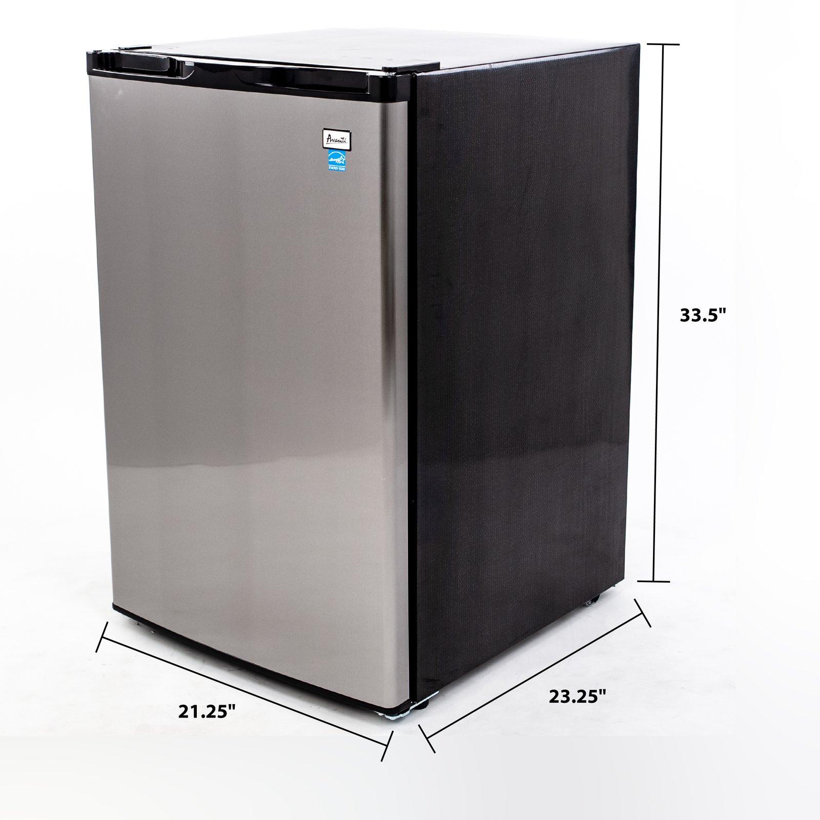 Keep your favorite snacks and beverages close by in this retro 4.5 cubic foot refrigerator from Avanti. The perfect mini fridge for the office, dorm, man cave, she-shed, bar, bedroom, or anywhere you need a little extra refrigerator space. The adjustable door shelves allow you to easily store beverages and can accommodate standard size cans and gallon size bottles for your convenience. The interior glass shelves are adjustable and removable so you can arrange salads, fruits, snacks, and other food for easy access throughout the day. The true freezer compartment is the perfect solution for storing frozen foods. This compact fridge features automatic defrost so your food and beverages remain cold and fresh. Select the right settings for your items with the adjustable thermostat control.