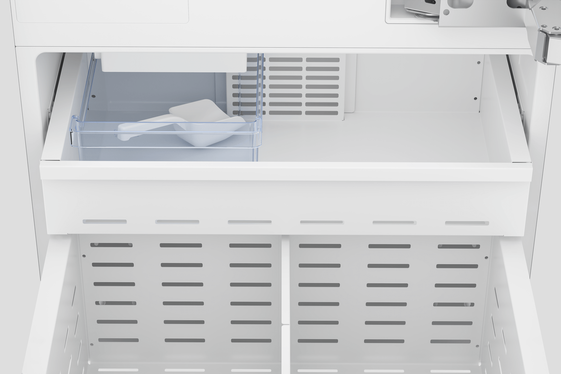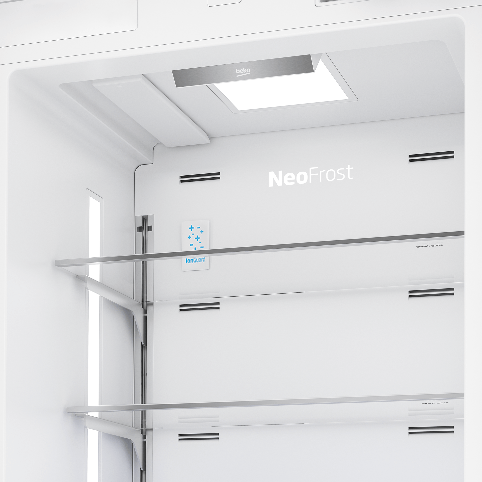 NeoFrost™ Dual Cooling's separate cooling systems for each compartment maintain ideal air flow and optimal temperatures with a high level of humidity in both the freezer and the fridge.