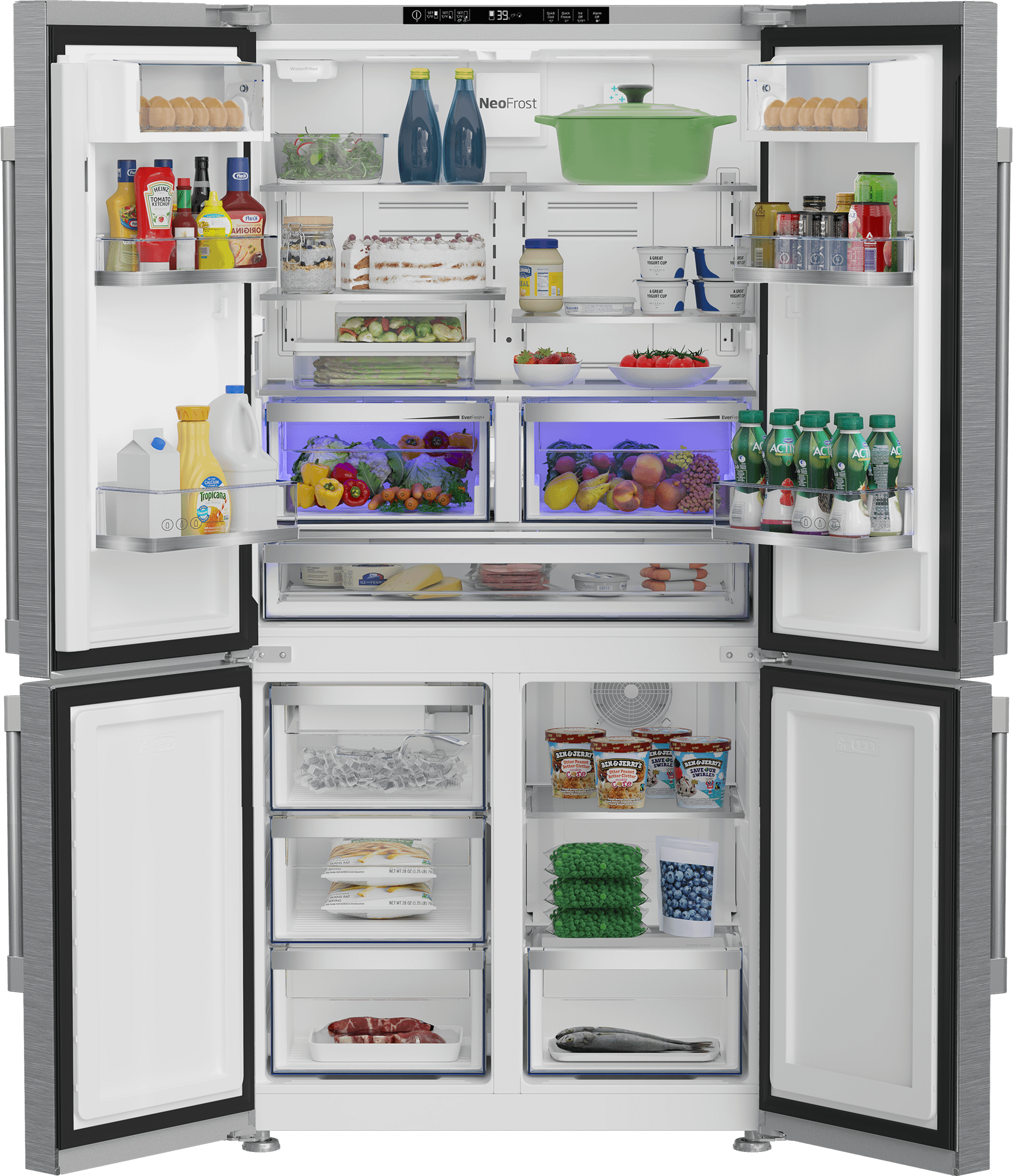 NeoFrost™ Dual Cooling's separate cooling systems for each compartment maintain ideal air flow and optimal temperatures with a high level of humidity in both the freezer and the fridge.