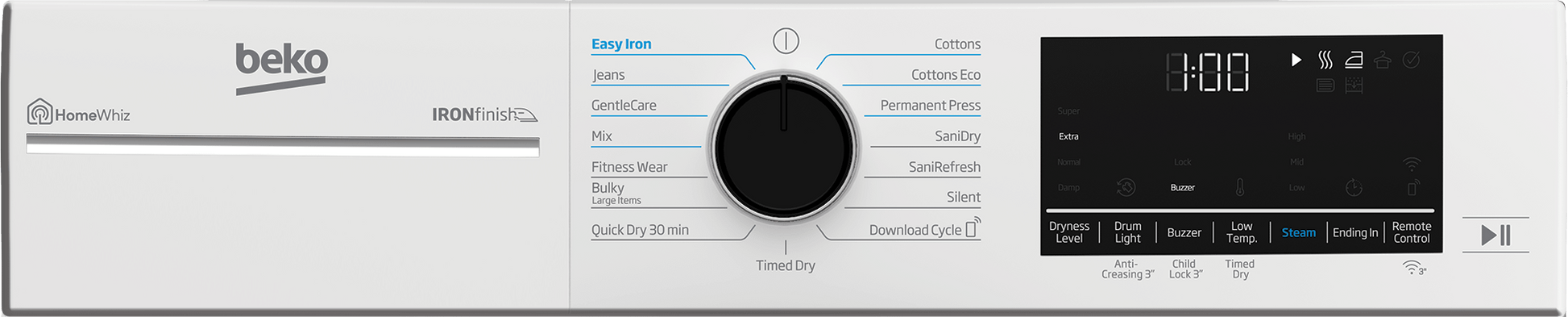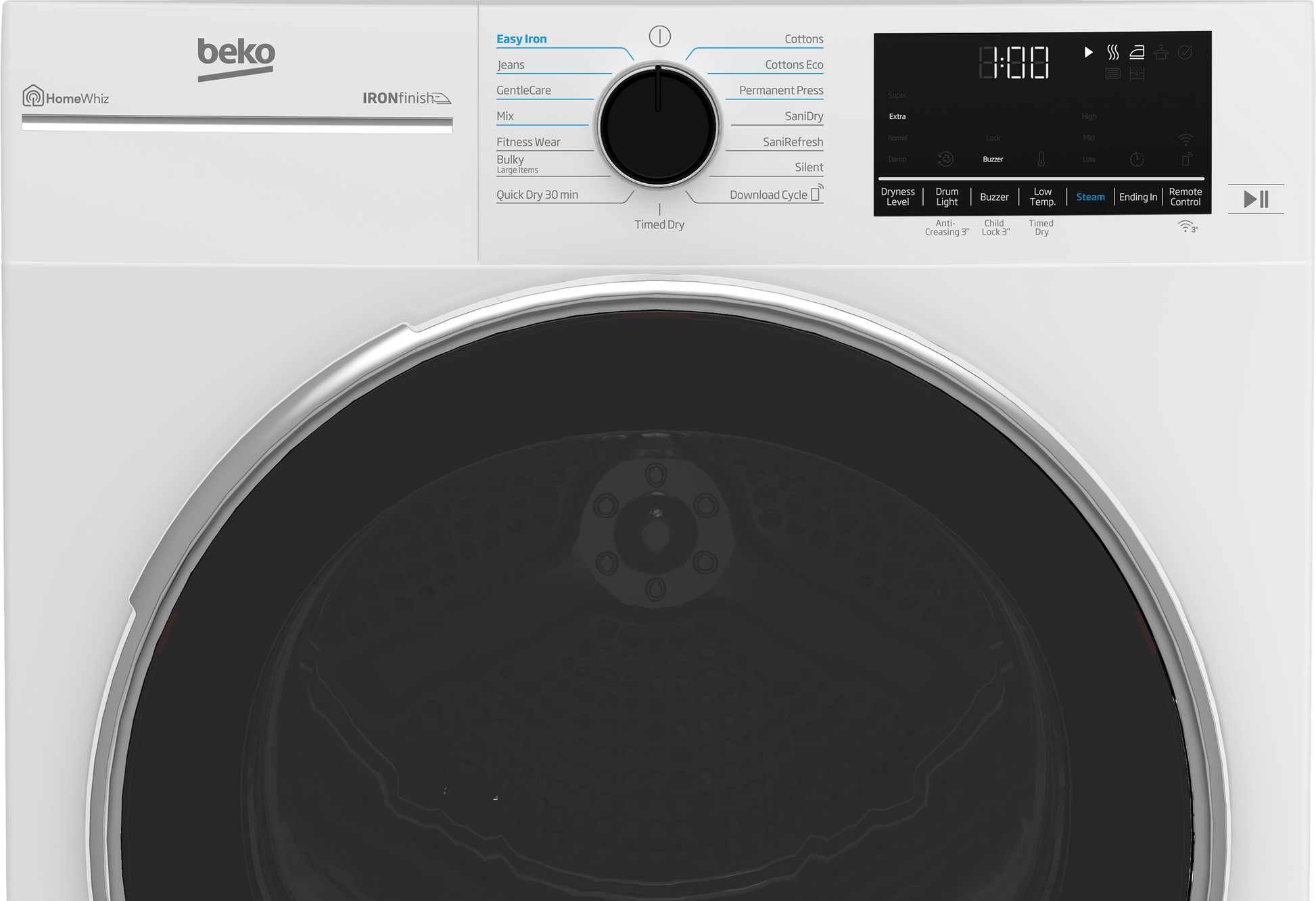 Beko washers and dryers are compatible with the HomeWhiz smart home app, allowing users to control their washer or dryer from anywhere.