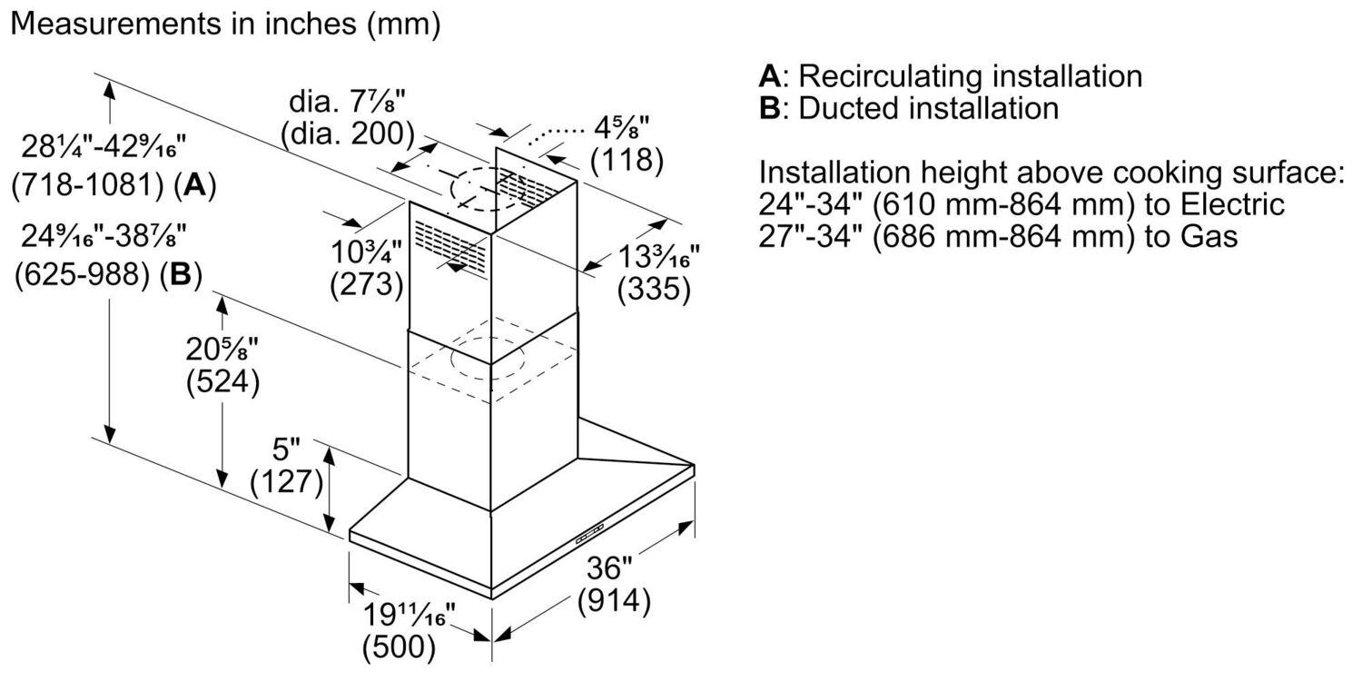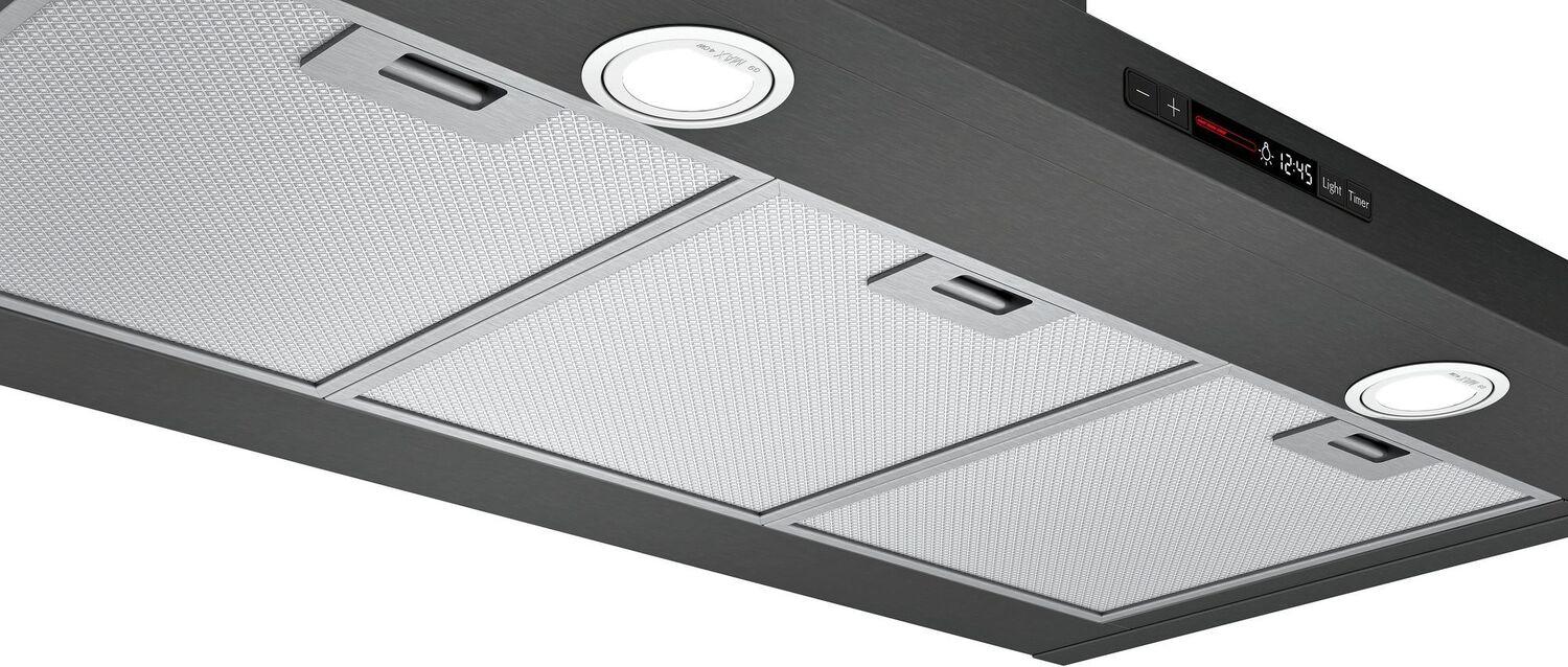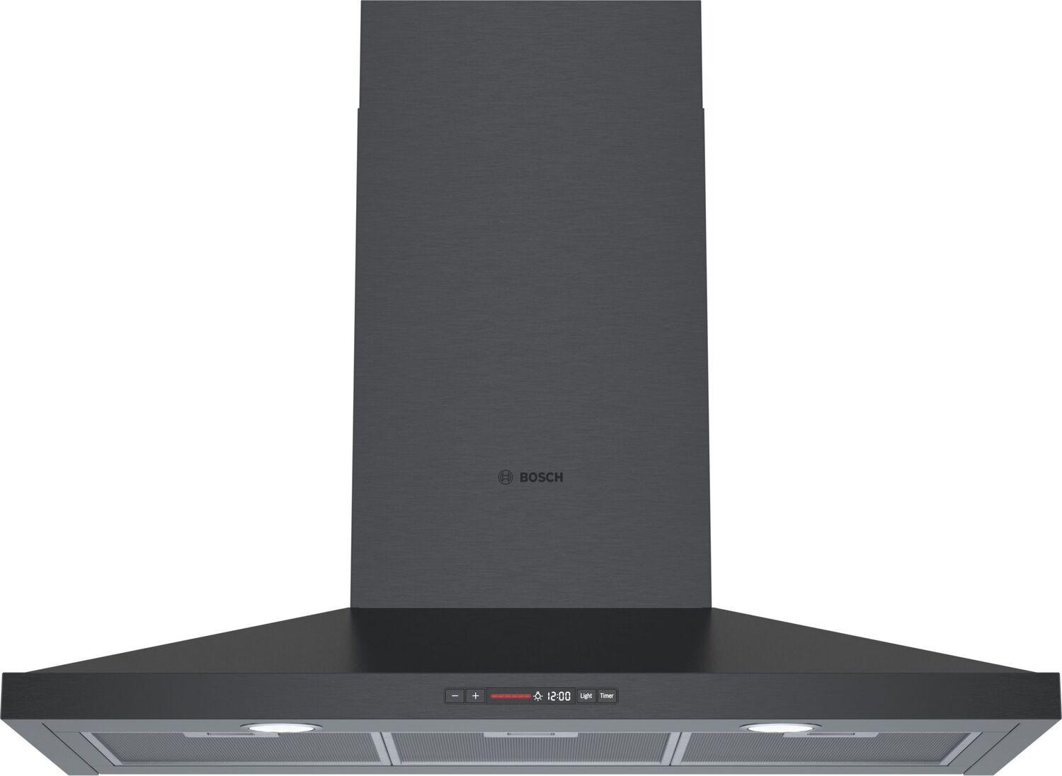 Bosch's inventive ventilation systems keeps mealtime fresh by quietly purifying the air while you cook. Black Stainless steel 36 in. pyramid canopy chimney hood integrate matching user interfaces and design aesthetics to complete the Bosch kitchen suite with sleek and sophisticated styling. With 600 CFM of power, beautiful Bosch hoods will quickly clear the air of grease, steam, smoke and odor to keep your home fresh and odor free.