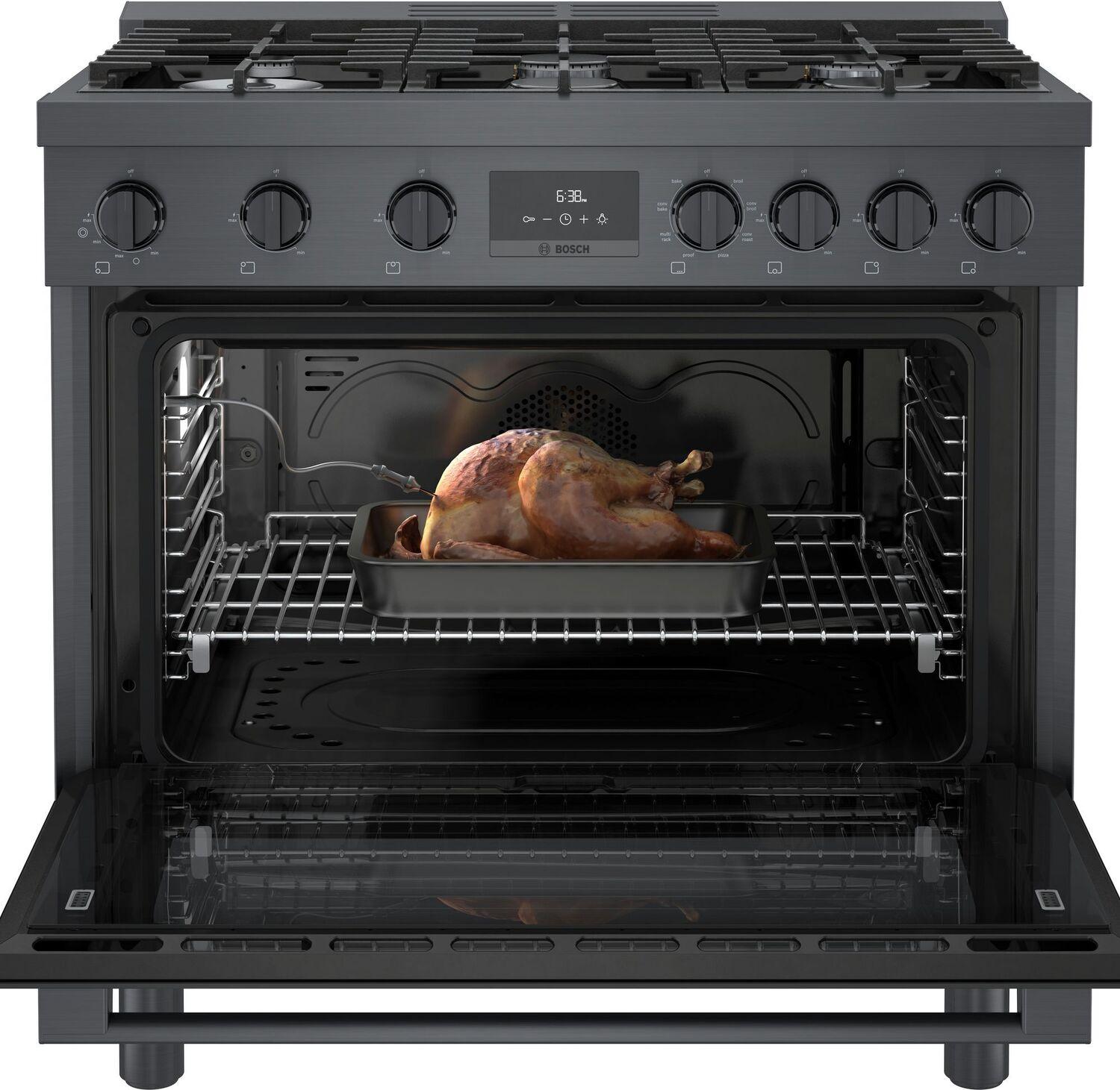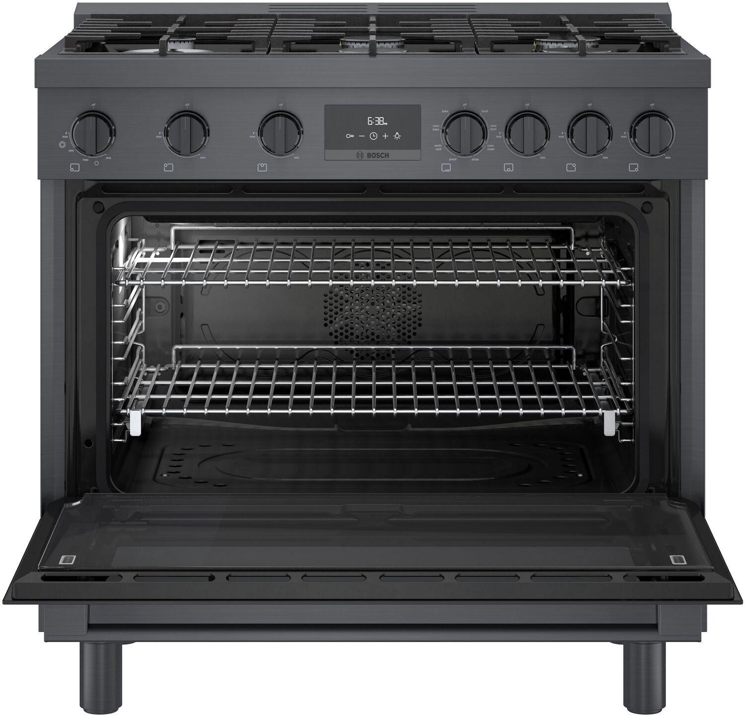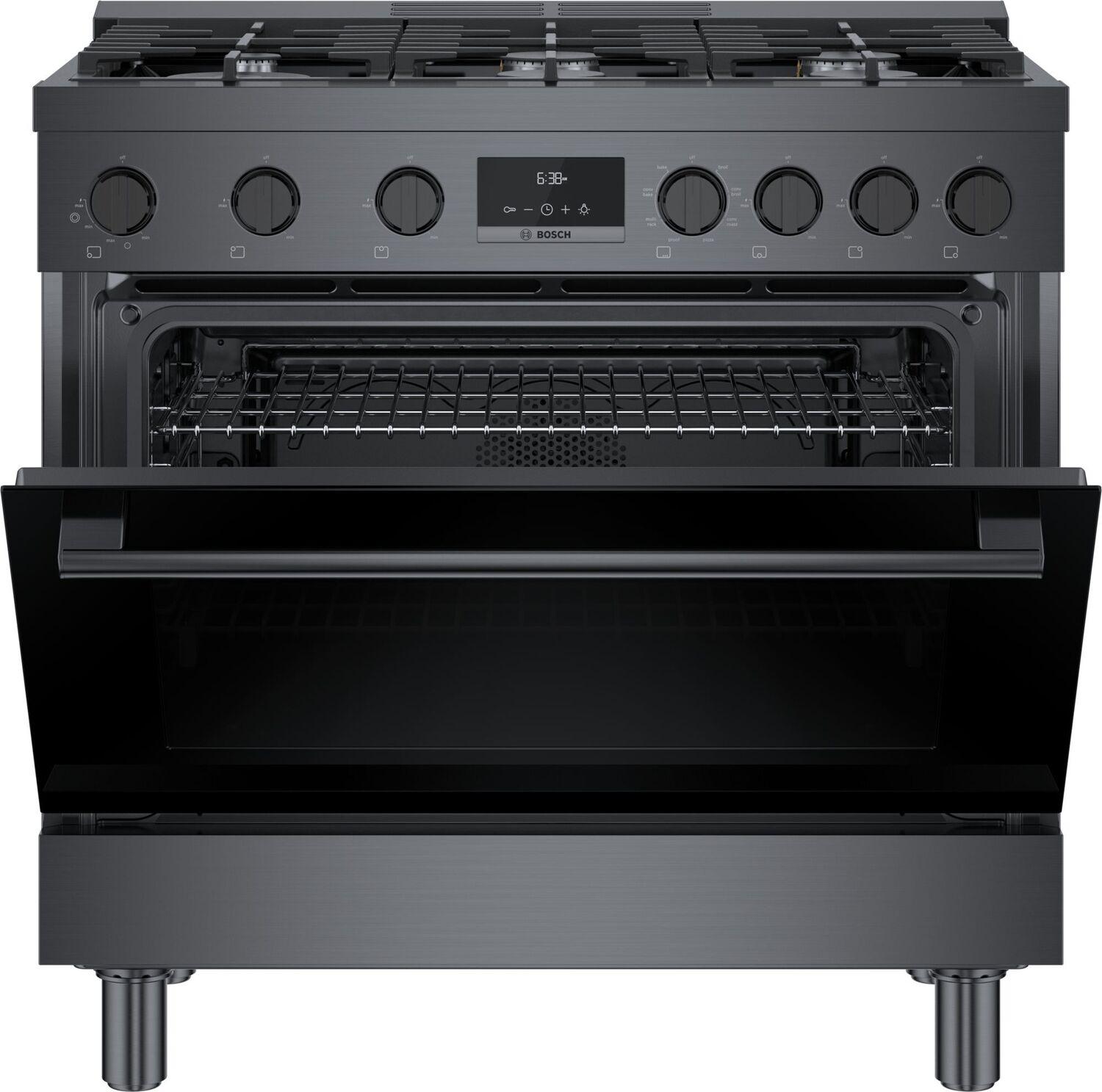 | Product Name | 800 Series, Dual fuel freestanding range, 36'', Black stainless steel |
