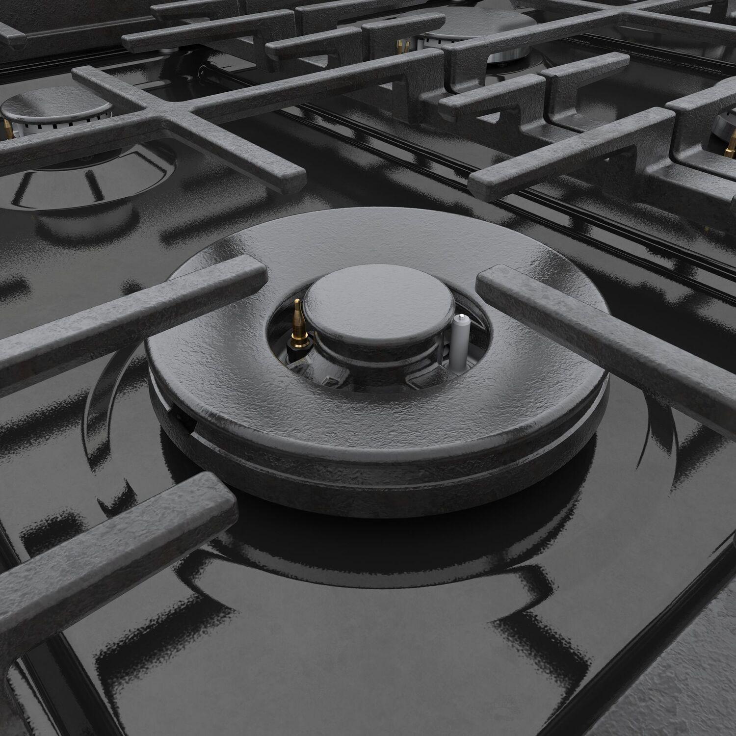 - Continuous Cast Iron Grates: - allows you to easily slide heavy pots and pans from burner to burner.