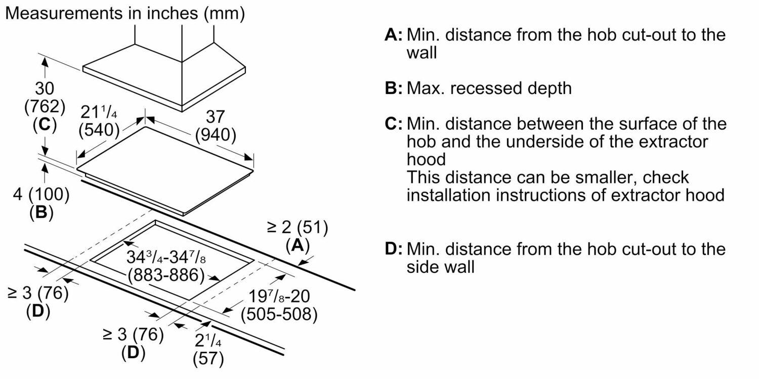 Technical Overview Overall Appliance Dimensions (HxWxD) (in) 1/4" + 4 " x 37" x 21 1/4" Required Cutout Size (HxWxD) (in) 4 " x 34 3/4 " x 19 7/8 "