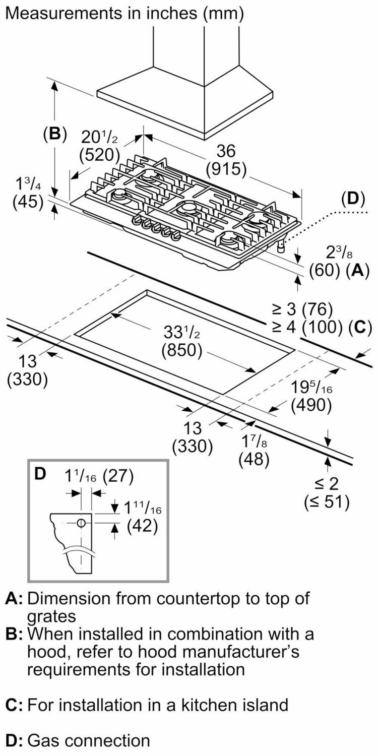 | Required Cutout Size (HxWxD) (in) | 1 49/64'' x 33 1/2'' x 19 1/3'' |