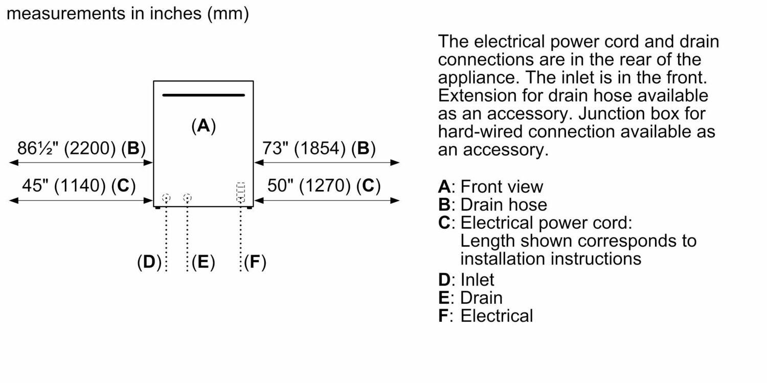 Technical Overview Overall Appliance Dimensions (HxWxD) (in) 33 7/8'' x 23 9/16'' x 22 9/16'' Silence Level 48 dB(A) re 1pW