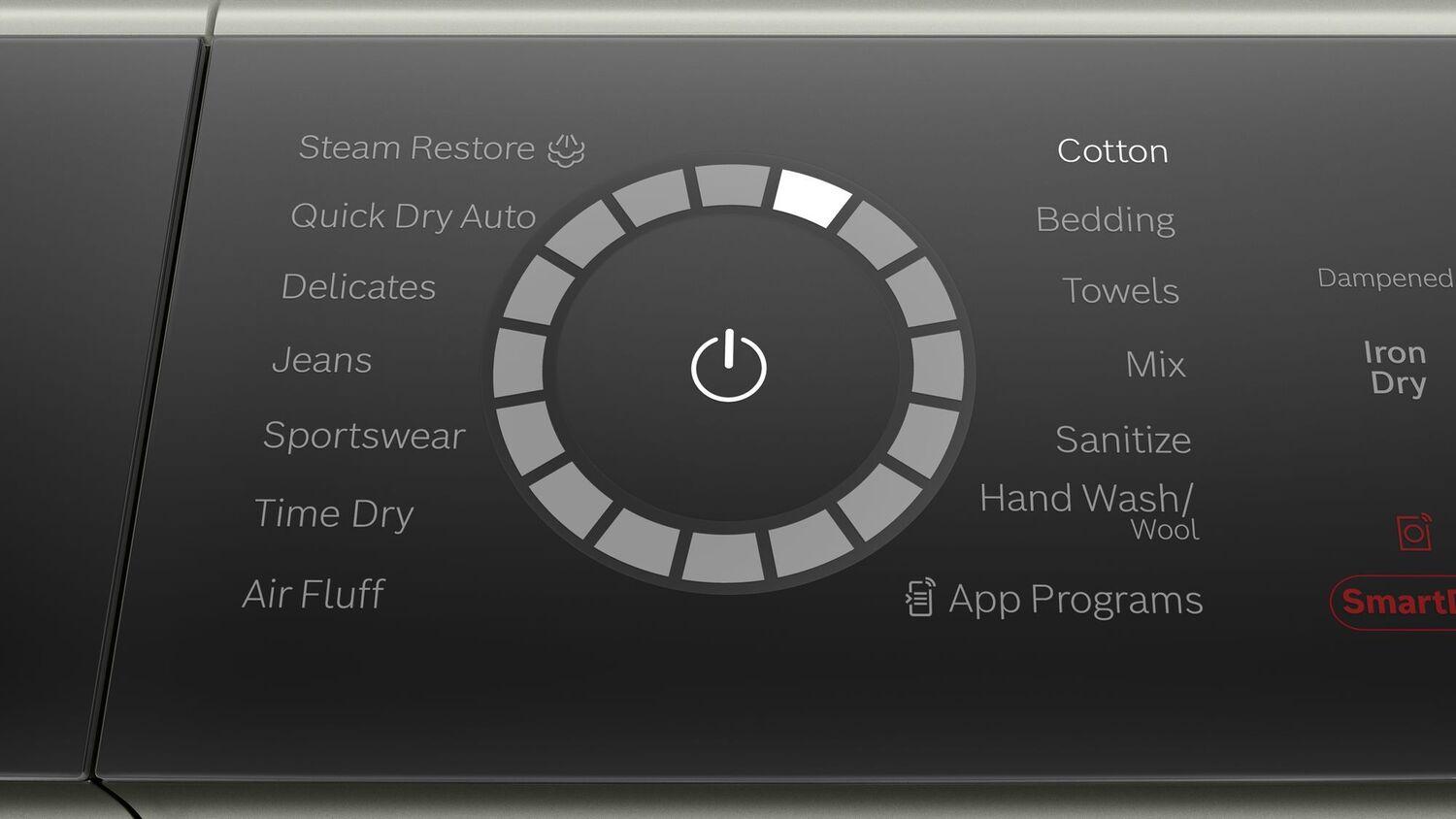 - Choose the perfect program and options for all of your loads - 13 dry cycles including Steam Restore, Quick Dry Auto, Cotton, Bedding, Towels, Sanitize, Mix, Hand Wash/Wool, Jeans, Delicates, Time Dry, Air Fluff, Sportswear and 8 options including Low Heat, Remote Start, Start/Pause, Finish In, Dryness Level, End Signal, Wrinkle Block and Child Lock