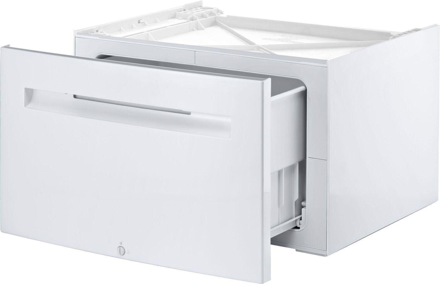 24 in. Laundry Pedestal to raise Dryer height for easier access. Pedestal includes a pull-out drawer for additional storage. This Pedestal is compatible with Bosch Dryer units only.