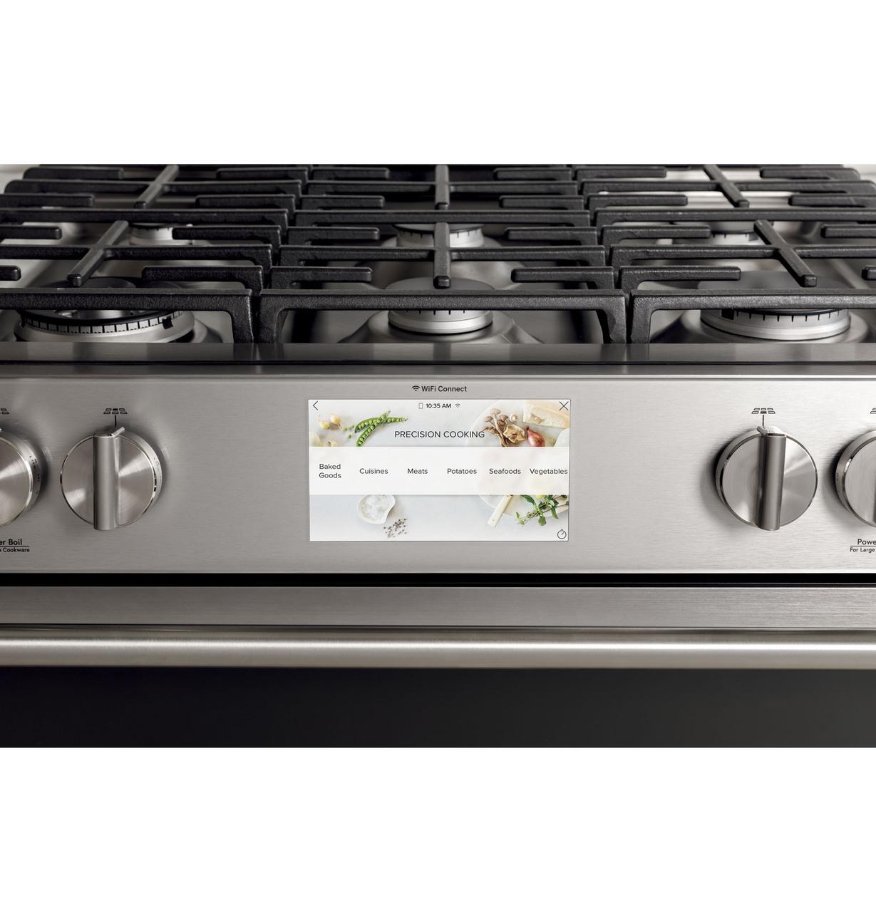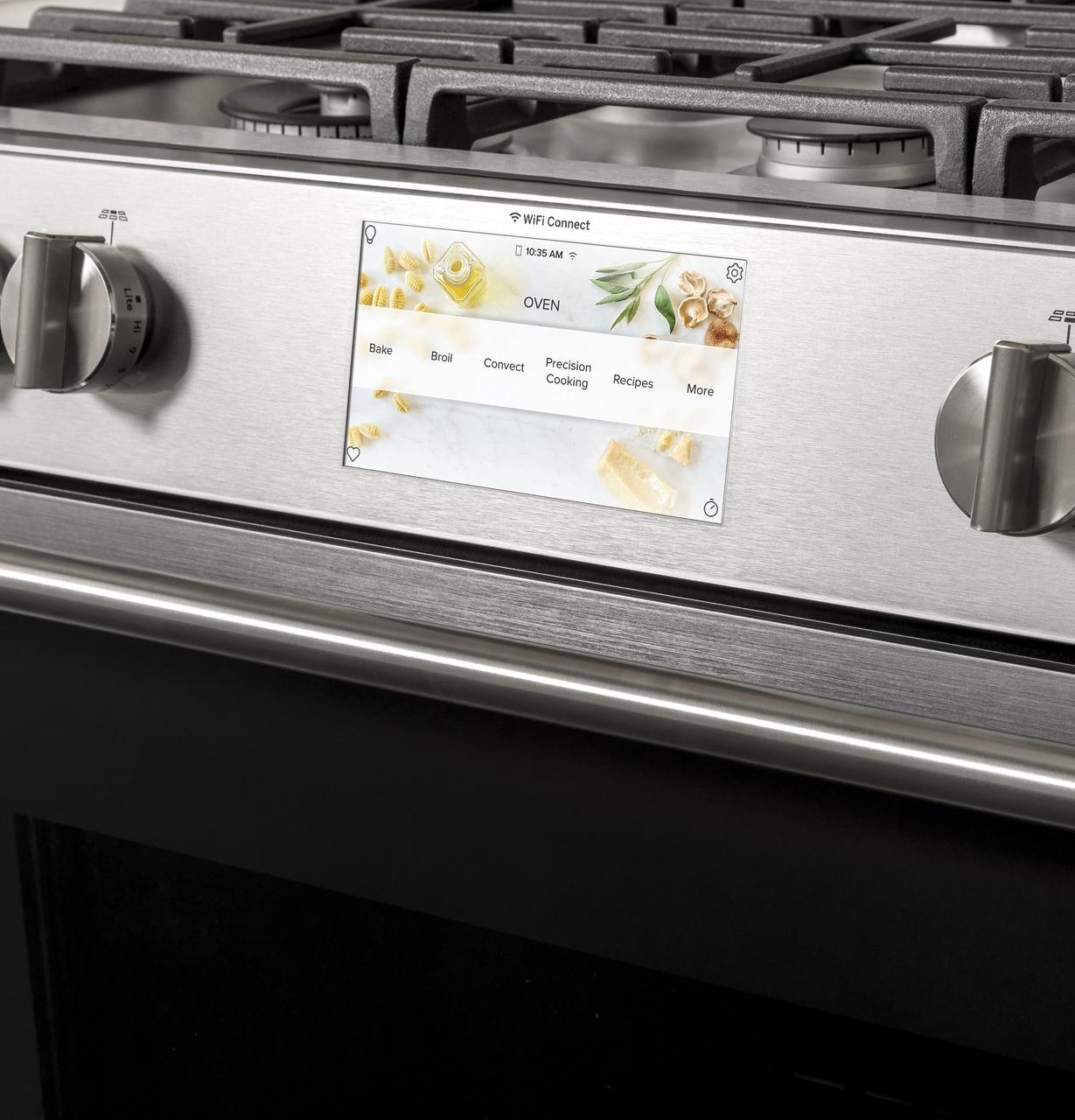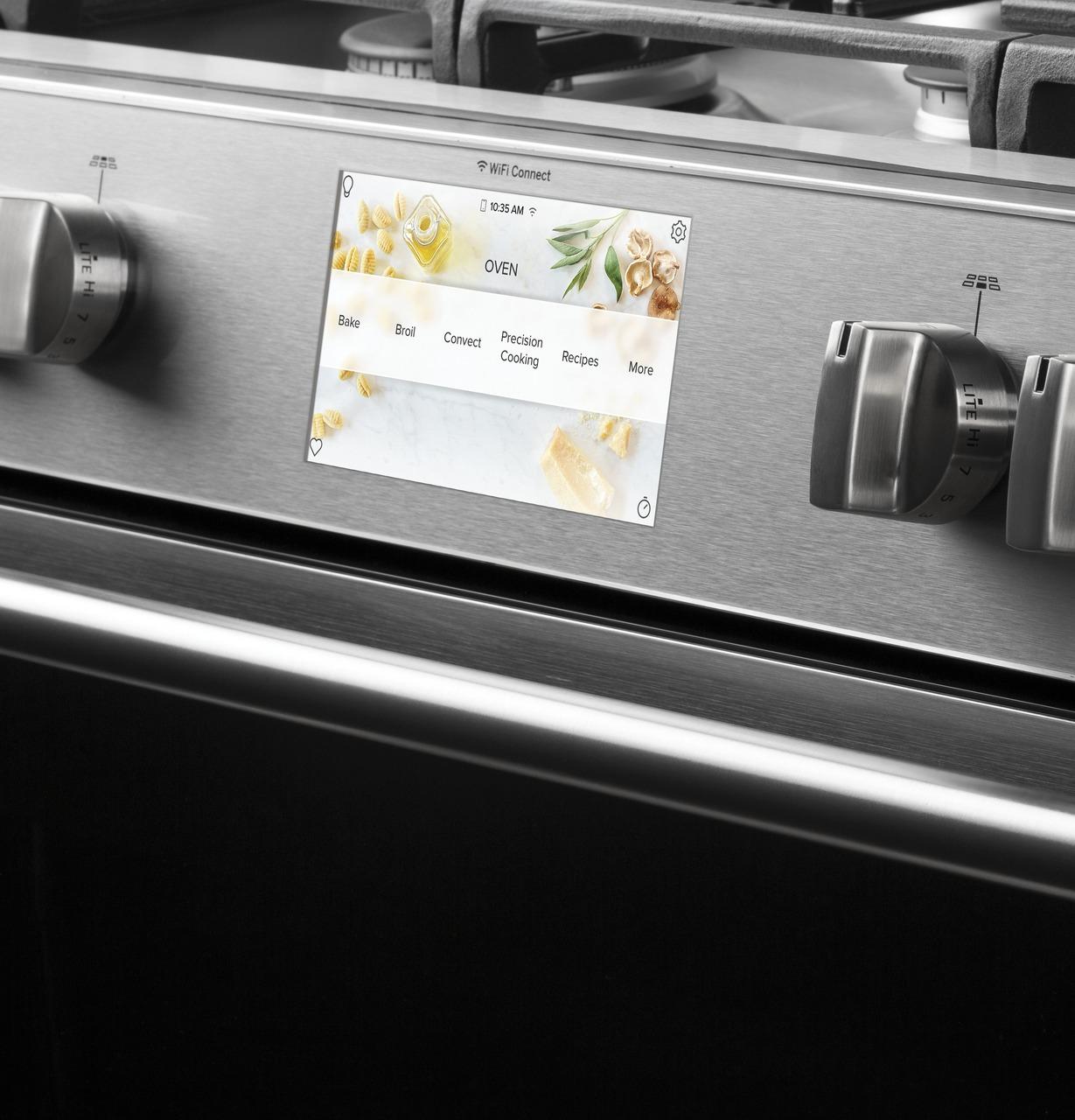 Designed with a stunningly streamlined aesthetic and cutting-edge features, this range lets you cook for any number of guests with ease and style. The first in the industry with six versatile burners, its edge-to-edge cooktop also includes an integrated griddle to handle large meals flawlessly. WiFi Connect provides smart phone and voice control, and a stunning 7" LCD touch screen makes hands-on use simple.