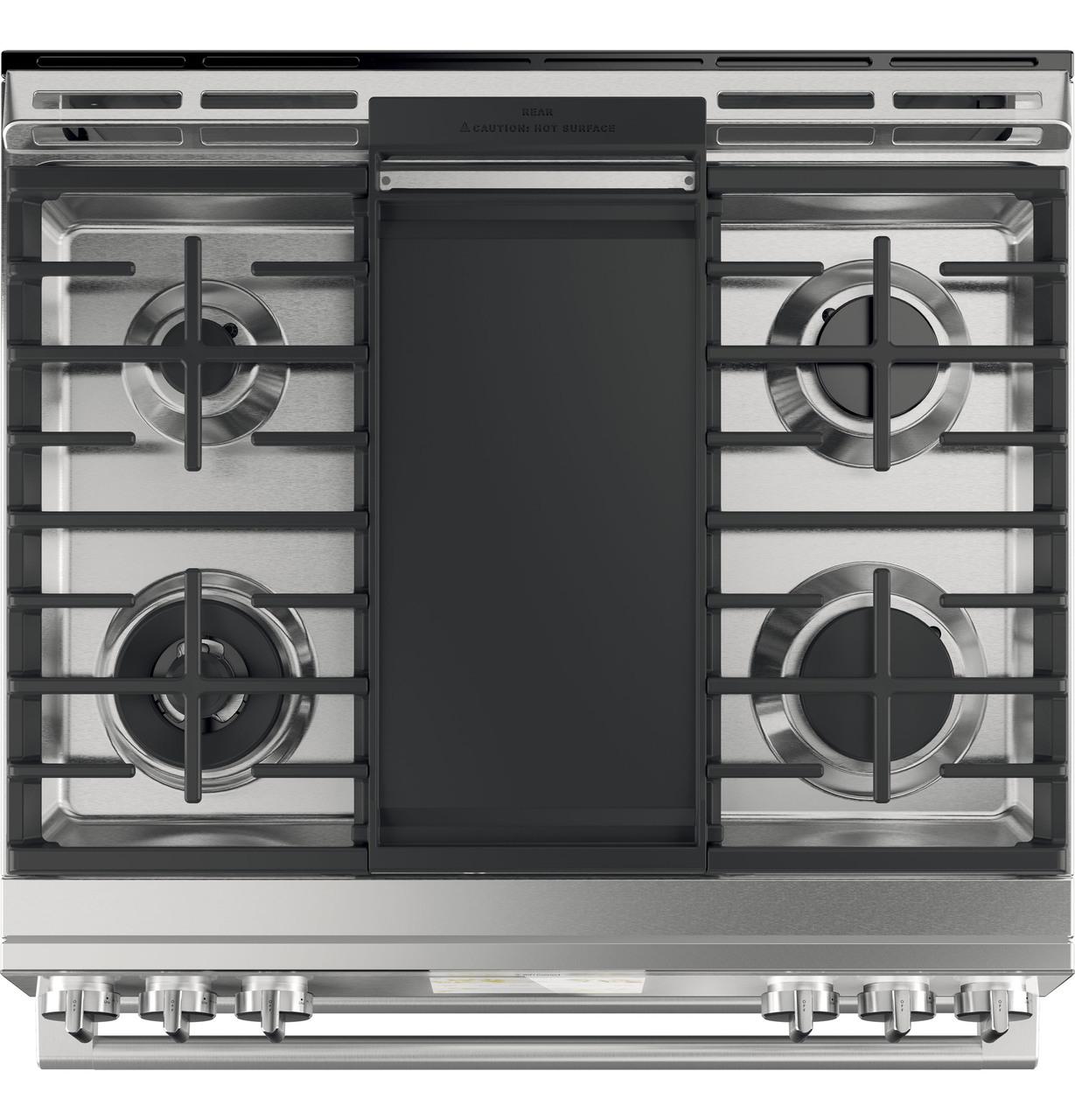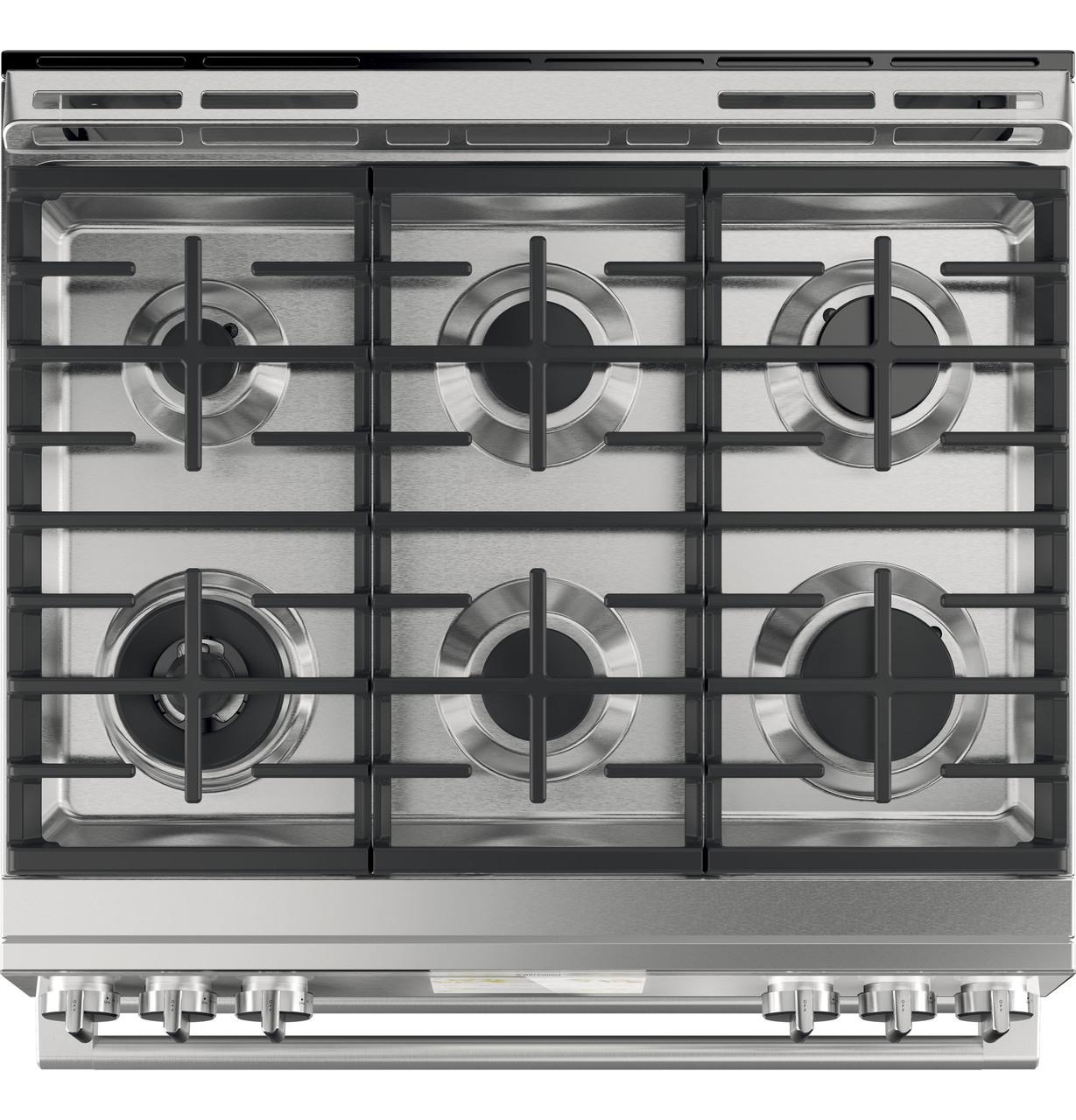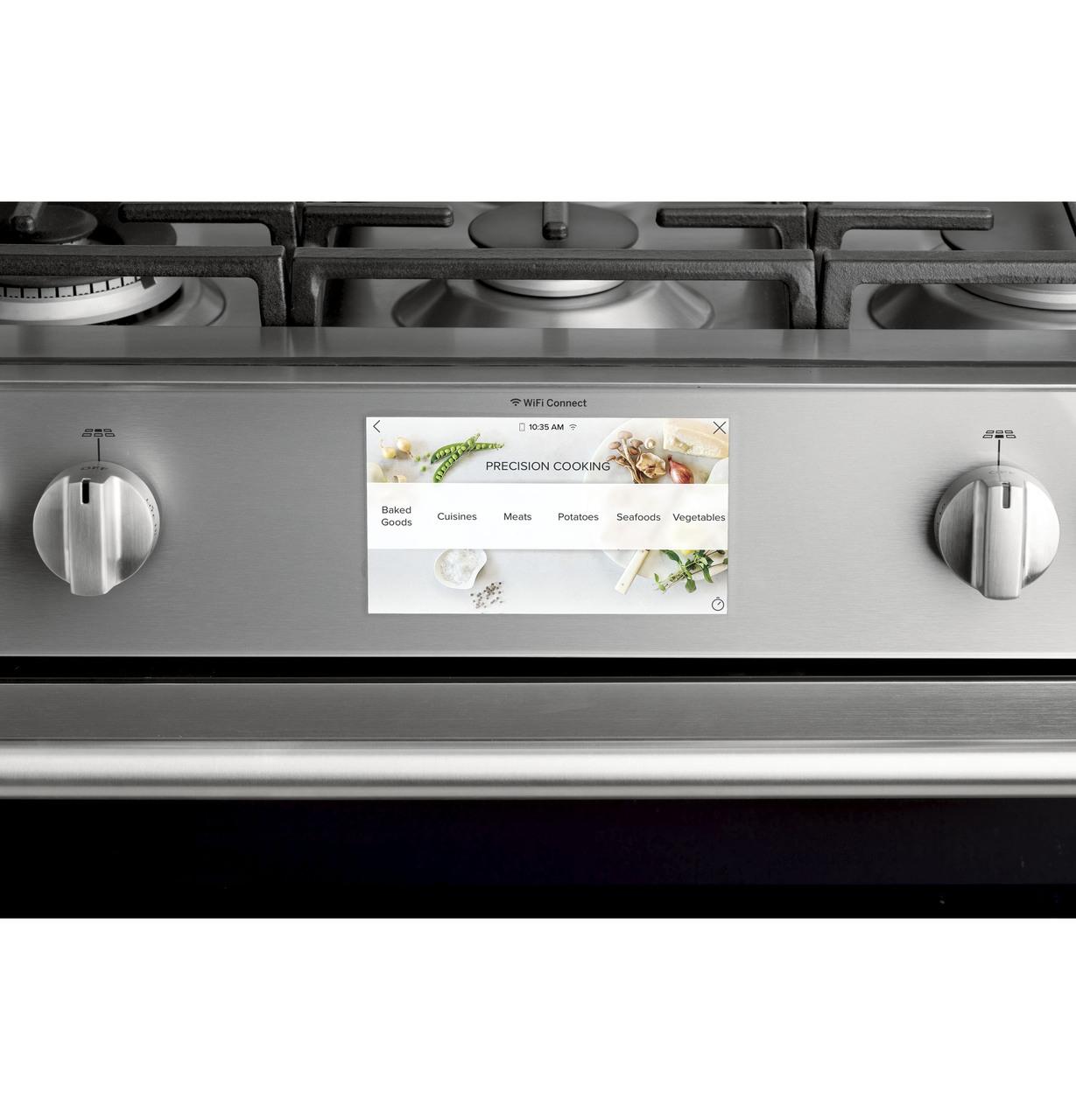 Designed with a stunningly streamlined aesthetic and cutting-edge features, this range lets you cook for any number of guests with ease and style. The first in the industry with six versatile burners, its edge-to-edge cooktop also includes an integrated griddle to handle large meals flawlessly. WiFi Connect provides smart phone and voice control, and a stunning 7" LCD touch screen makes hands-on use simple.
