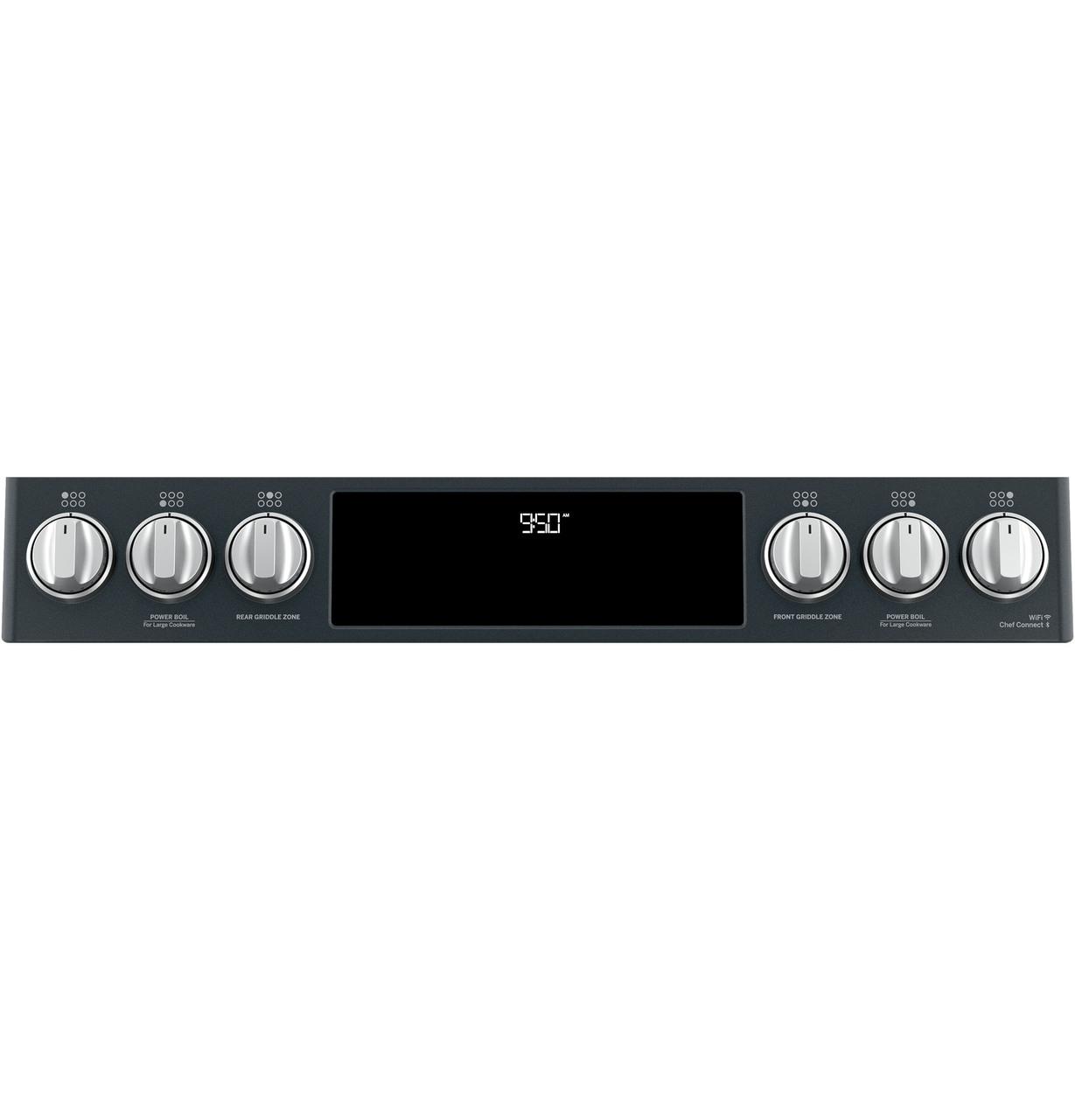 Explore your love of entertaining. This Dual Fuel slide-in range unites the power of a gas cooktop with the precision of an electric oven. The industry's first edge-to-edge cooktop with six versatile burners also includes an integrated griddle to easily handle large meals and family favorites. And a double oven lets you prepare different foods at different temperatures at the exact same time.