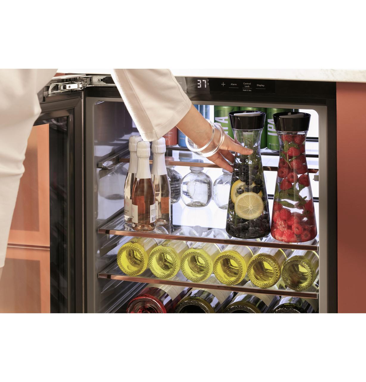 This beverage center offers flexible storage options with a shelf that lets you make room for tall items like bottles of wine and craft beer