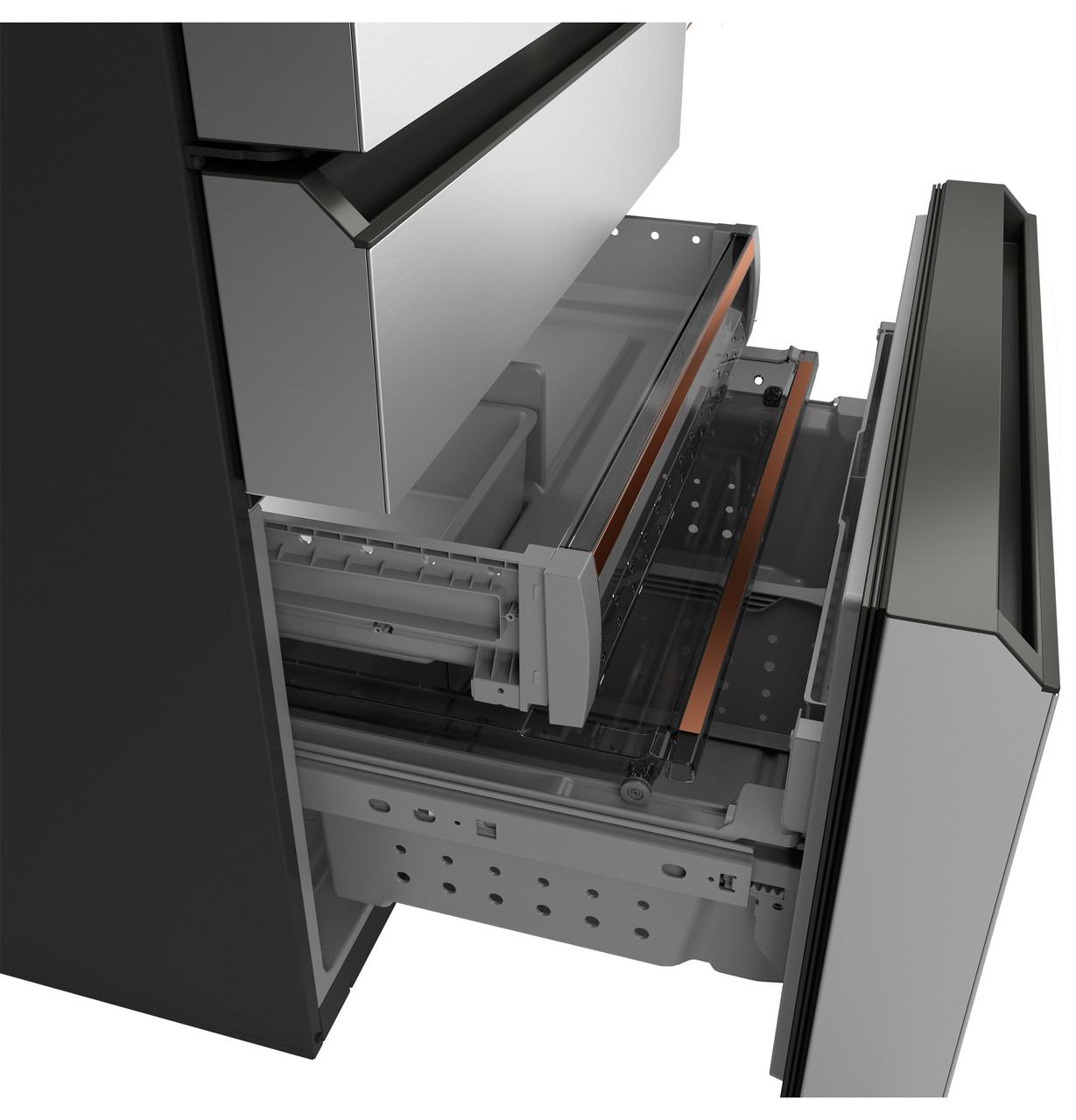 This sophisticated refrigerator with built-in WiFi allows users to expand on its convenient features and receive alerts when connected to the SmartHQ App.