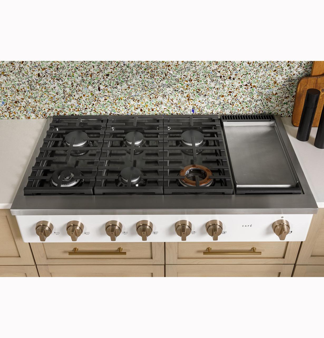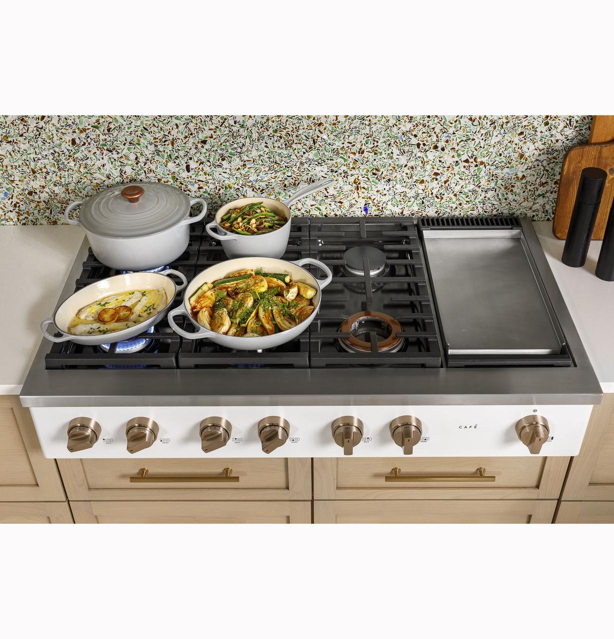 Continuous, cast-iron gas stove grates allow you to easily move heavy cookware across the cooktop surface for a more streamlined cooking experience