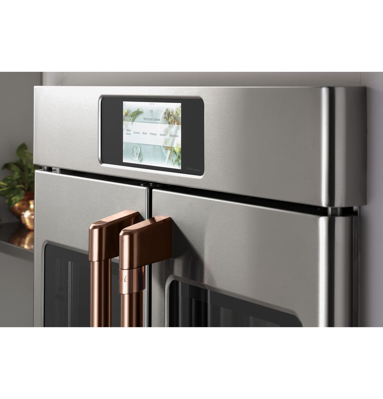 Bring unparalleled sophistication to your kitchen with a French-door wall oven that exudes professional style and allows you to personalize the look with customizable handles and finishes