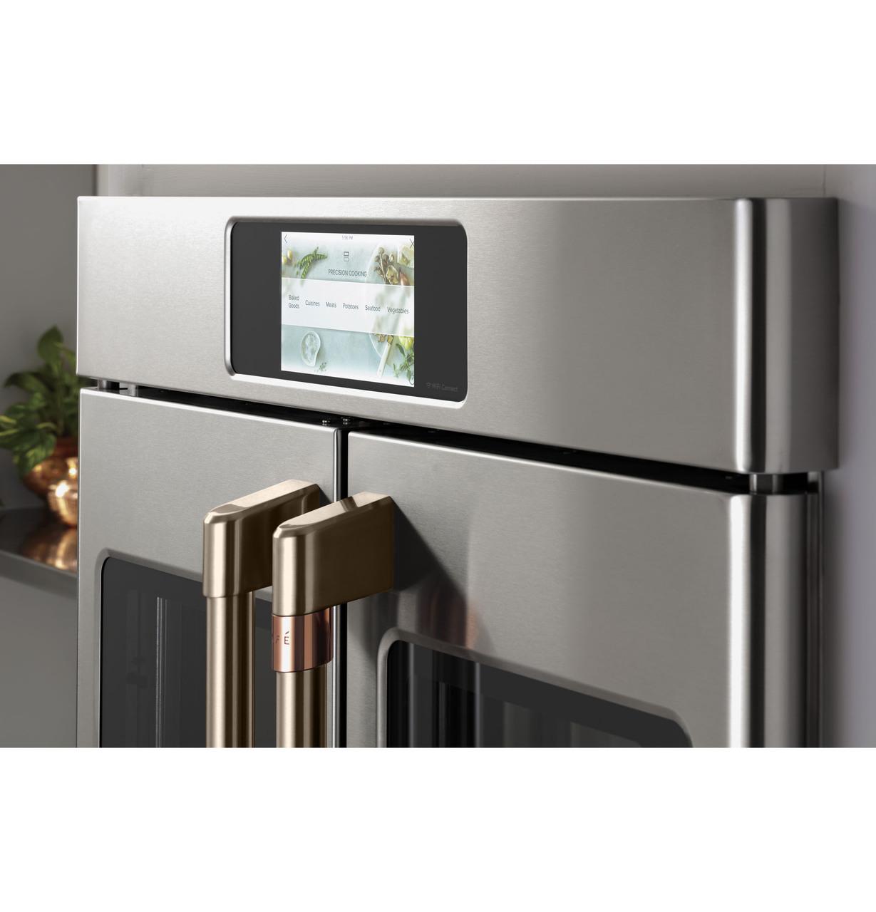 Bring unparalleled sophistication to your kitchen with a French-door wall oven that exudes professional style and allows you to personalize the look with customizable handles and finishes