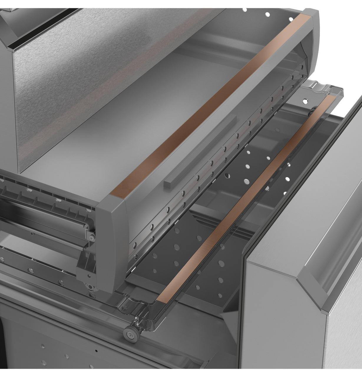 Use the slim, full-width freezer compartment for flatbread, pizzas and other uniquely shaped frozen items, which is part of a three-level, freezer storage system of sliding shelves and trays