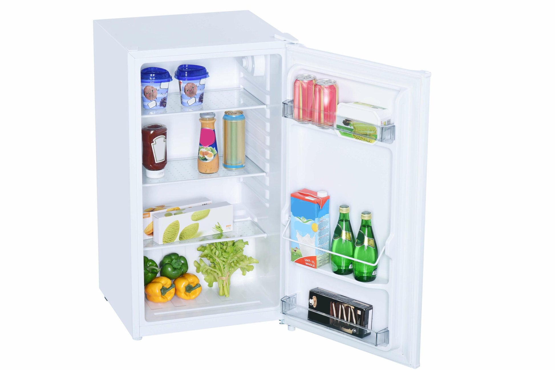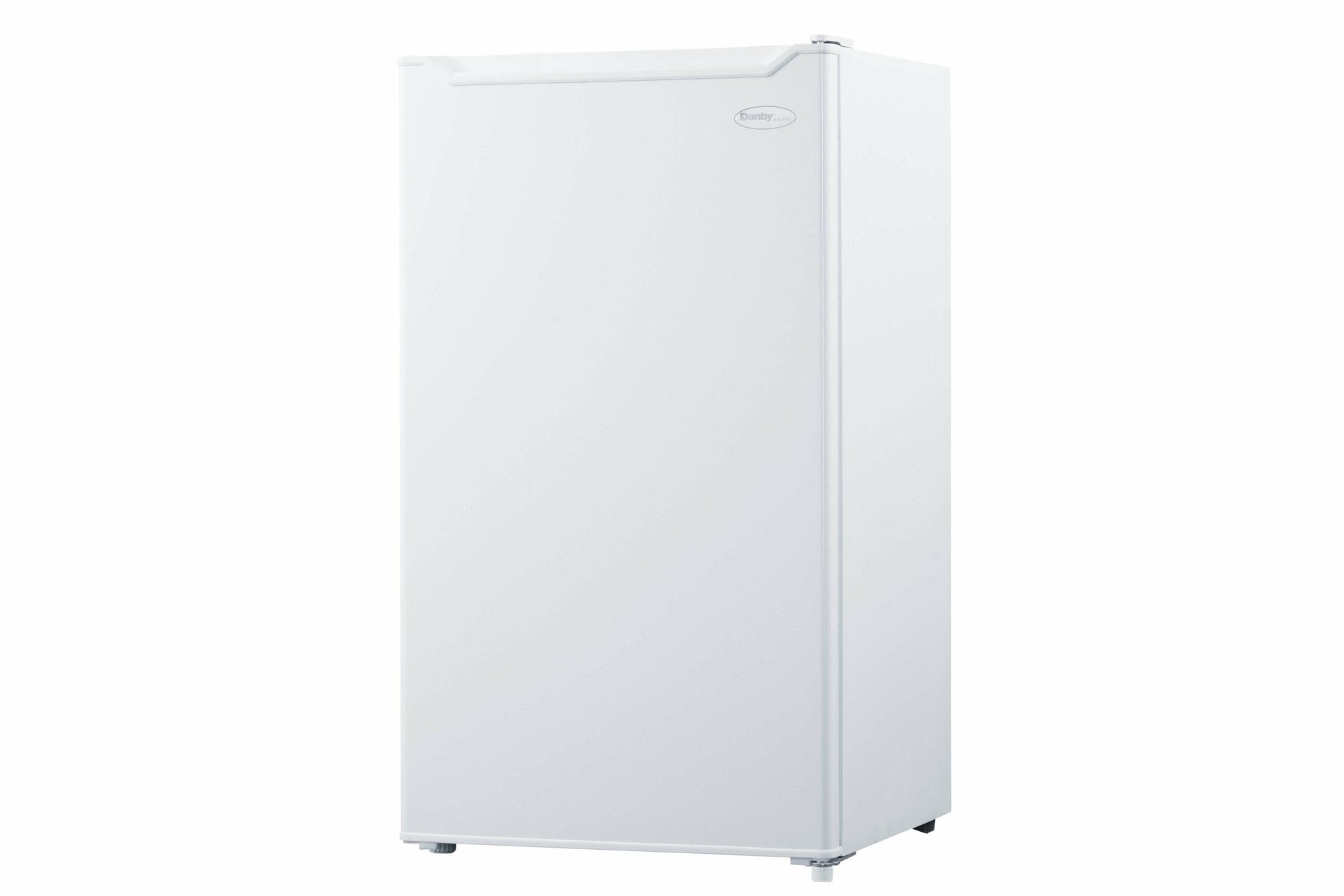 This sleek compact all-refrigerator by Danby offers 3.2 cubic feet (91 L) of refrigeration, making it ideal for lunchrooms, dorm rooms, smaller kitchens, and wet bars. There's plenty of room for all your snacks due to the mini fridge's two full-width and one-half-width glass shelves. All your favorite drinks can be kept cool with the tall bottle storage and mechanical thermostat. Reduce your electrical bill and save on energy with this ENERGY STAR rated model. This small refrigerator also features a clever, reversible door hinge that enables you to adjust it for a left or right-handed opening via the integrated handle.