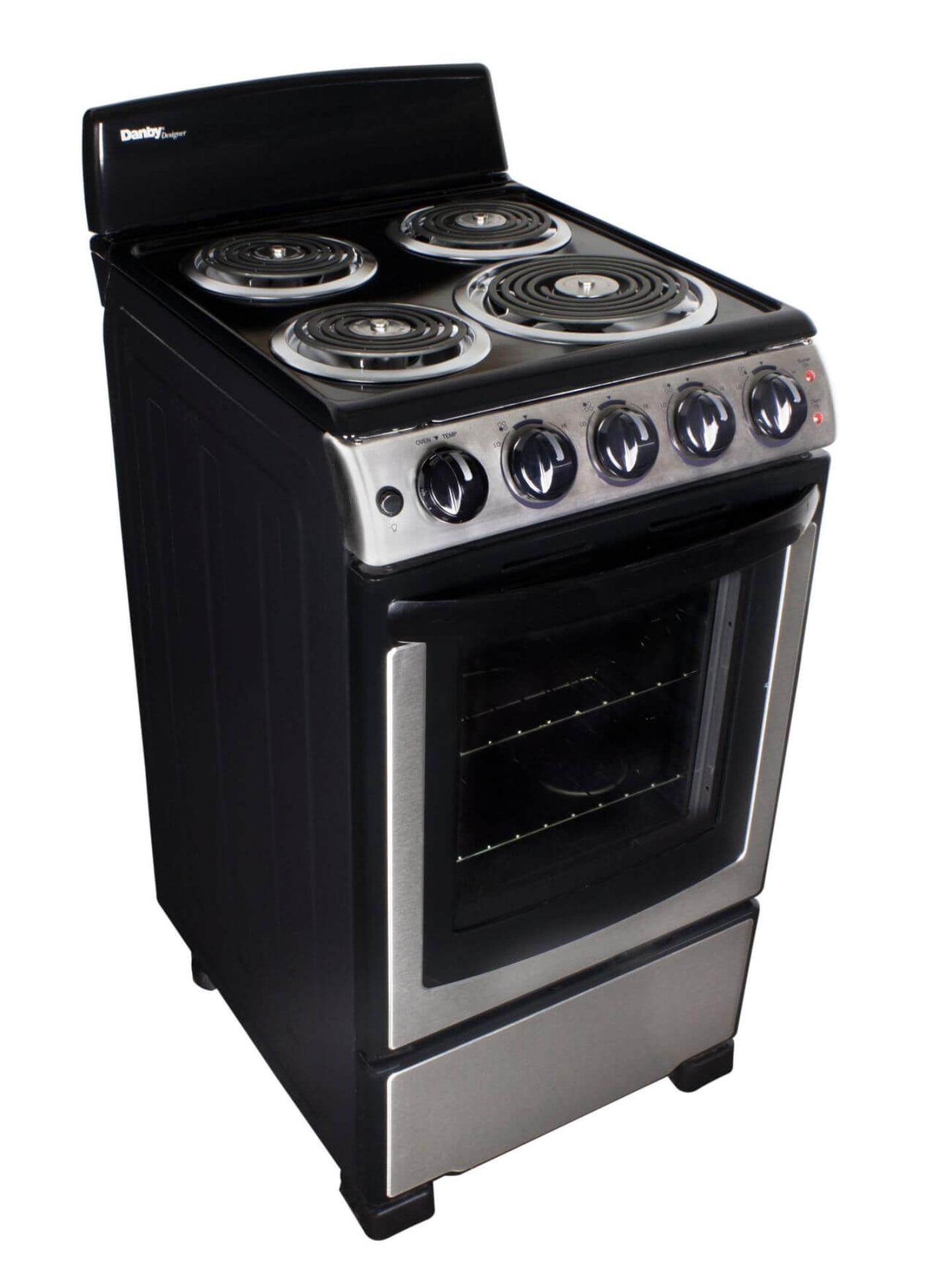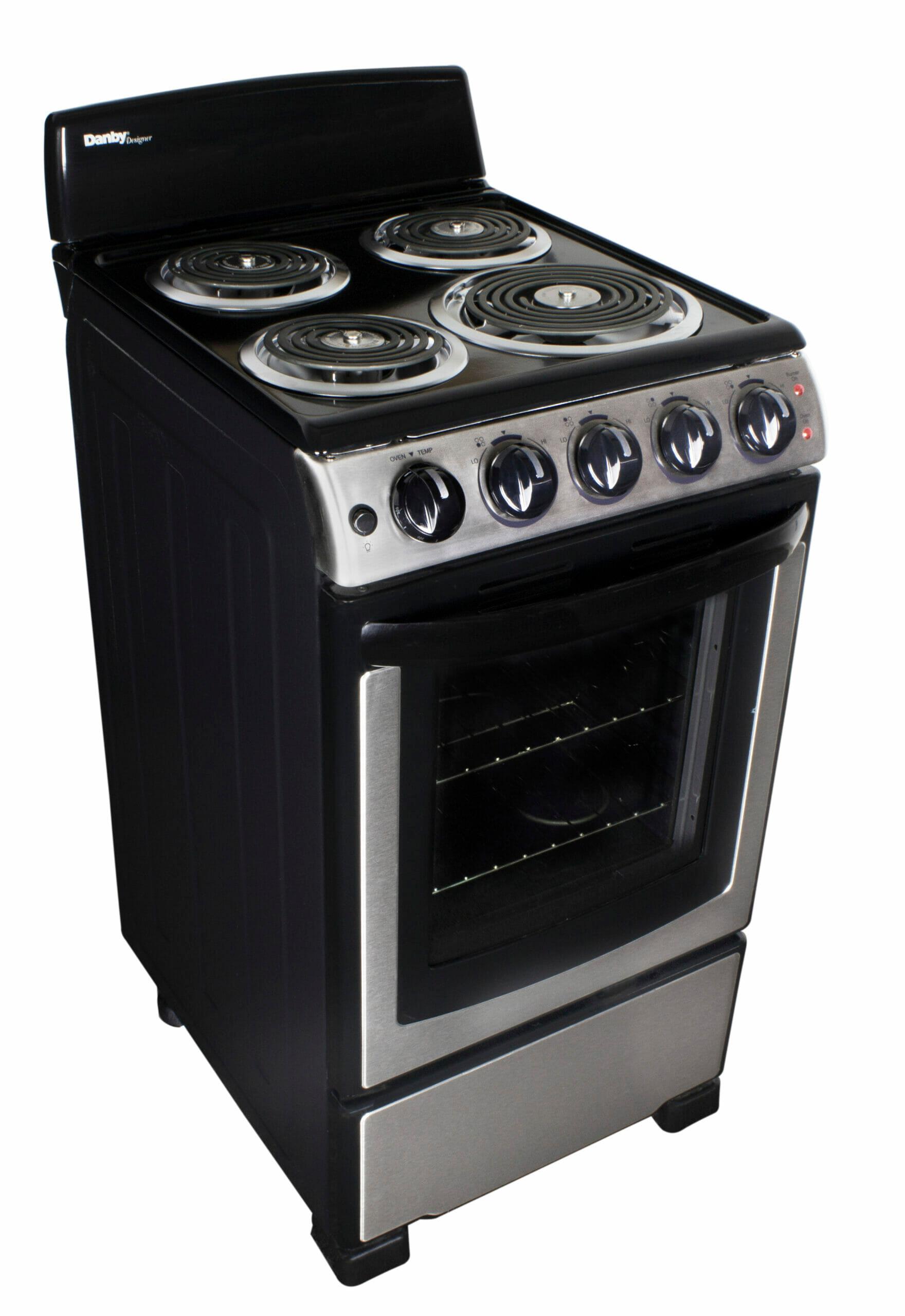 You dont need to be a world-class chef to enjoy cooking with this ultra-compact electric range by Danby. This attractive model may only be 20-inches wide, but it comes with everything you need for fine dining. This includes an oven and four burners: one eight-inch coil element and the other three being six-inches. This trendy appliance provides 2.3 cubic feet of oven space making it ideal for smaller areas such as apartments or cottages. It boasts an easy-to-clean porcelain cooking top. The oven temperature range is between 250F and 500F while the broiler can dish out 2,400 watts of power. This dependable electric range comes with push-and-turn knobs for added safety and includes two oven racks with four adjustable positions and safety stops for optimal cooking. Temperature limiting coils turn off when the pan reaches the maximum temperature in accordance with UL 858 60A. This range is ADA compliant and also offers a 12-month warranty on parts and labor with convenient in-home service.