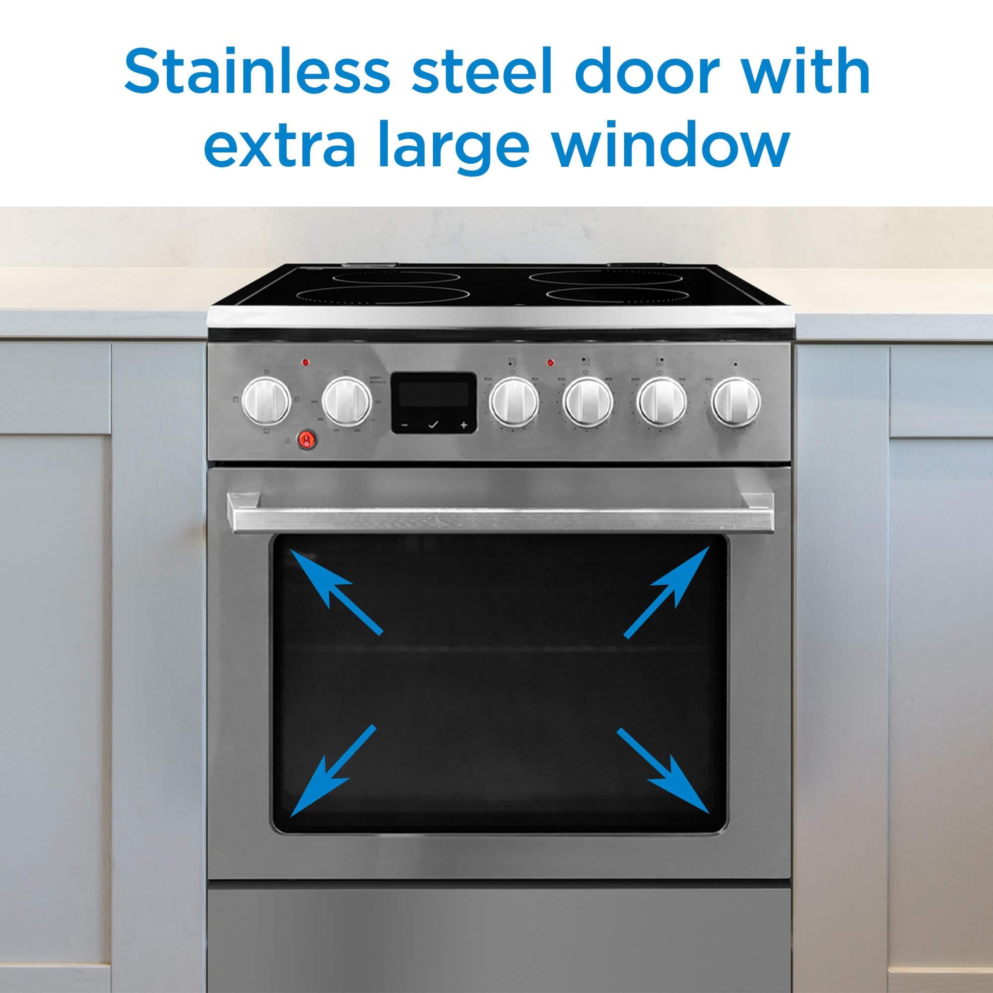 - SS door with XL window & Interior Oven light helps keep track of your food in the oven