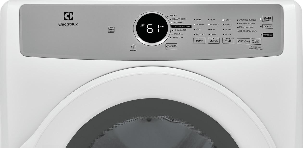 The Electrolux front load gas dryer features the 20-Minute Fast Dry cycle which allows you to quickly dry the items you need the most.