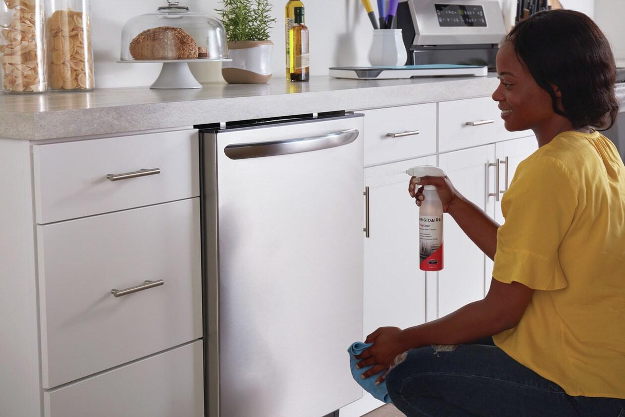 Make your stainless steel appliances shine with Frigidaire ReadyClean™ Stainless Steel Cleaner. Our scratch-free, streak-free formula removes fingerprints, smudges, grease, dirt and oil, while protecting and polishing to repel dust and dirt. Use on all stainless steel appliance brands and surfaces. Stainless Steel Cleaner is 12 fl. oz. Made in the USA in a recyclable bottle, our plant-based cleaner is environmentally-friendly and safe for all food contact surfaces.