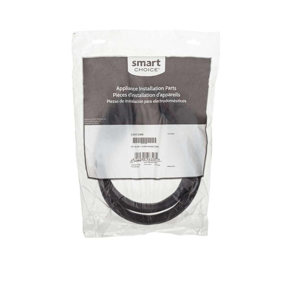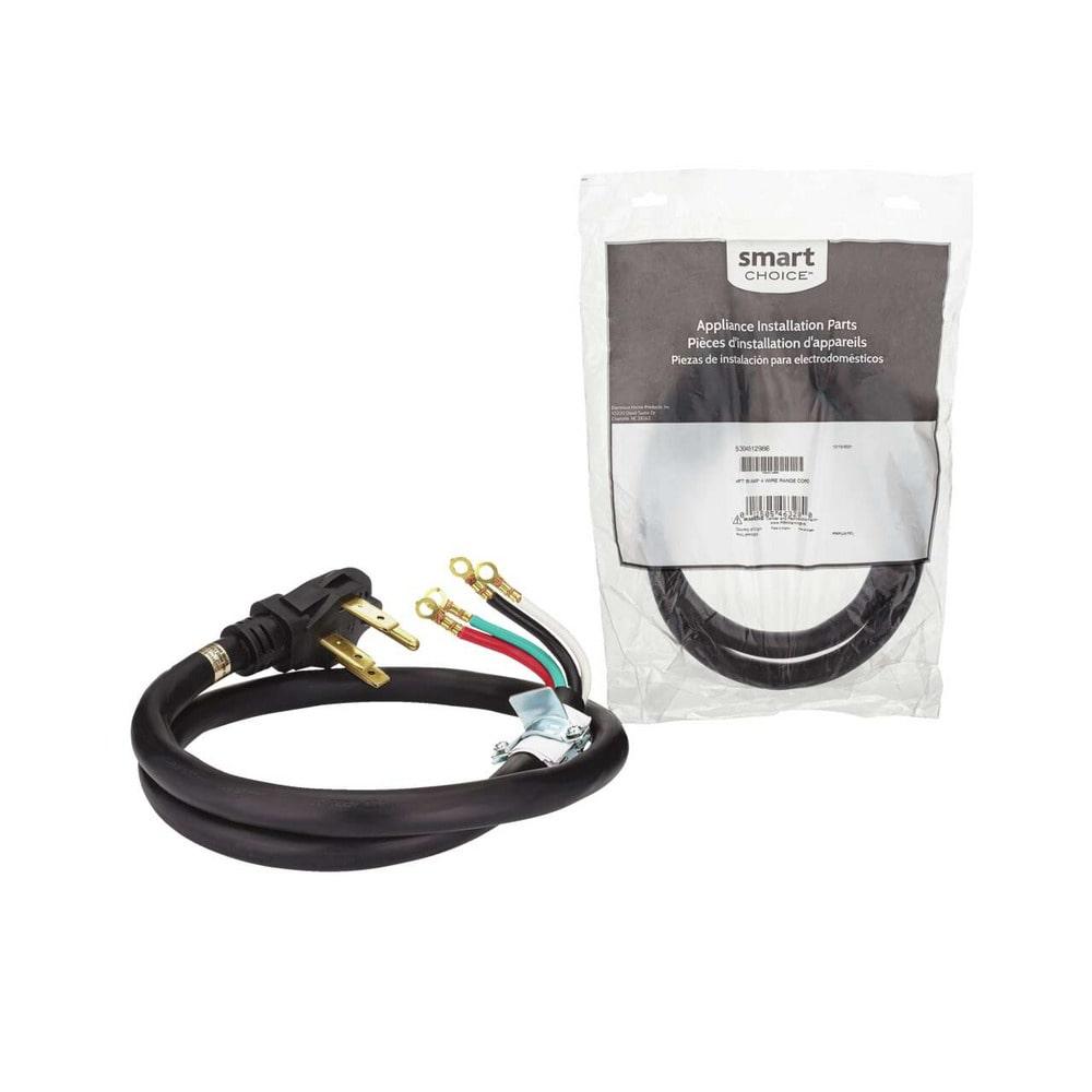 The 4 ft. Range Cord has a 4 prong plug and includes an adjustable strain relief bracket. The cord has ring terminal connectors that ensure the cord stays connected, and the heavy duty insulation prevents kinking and cracking for long-lasting durability.