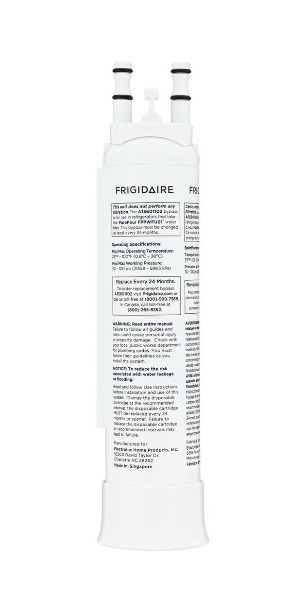 A Water Filter Bypass is designed for homes that have a whole-house water filtration system. This blank cartridge can be installed in the place of a water filter, bypassing the need for standard water filter replacements. Designed for use with Frigidaire® refrigerators that take a PurePour™ PWF-1™ water filter. (Not a water filter, replaces FPPWFU01)