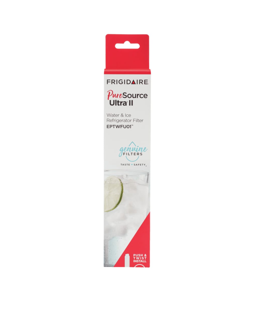 Keep safe, great tasting water flowing with PureSource Ultra II water filters - EPTWFU01™ reduces up to 99% of contaminants*, cuts back on plastic and saves the cost of bottled water. Frigidaire Genuine Filters - the smarter, safer choice. For complete list of reduced contaminants, please see Performance Data Sheet on Frigidaire.com.