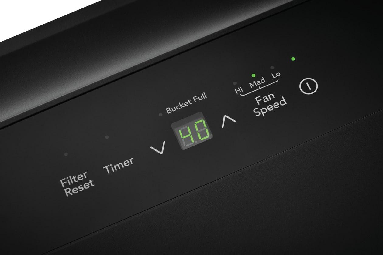 The Frigidaire 35 Pint Dehumidifier captures dust and helps manage your room's humidity levels with an Easy-to-Clean Washable Filter and Custom Humidity Control providing a cleaner, more comfortable home environment. The front loading bucket with carrying handle and splash guard makes cleaning hassle-free.