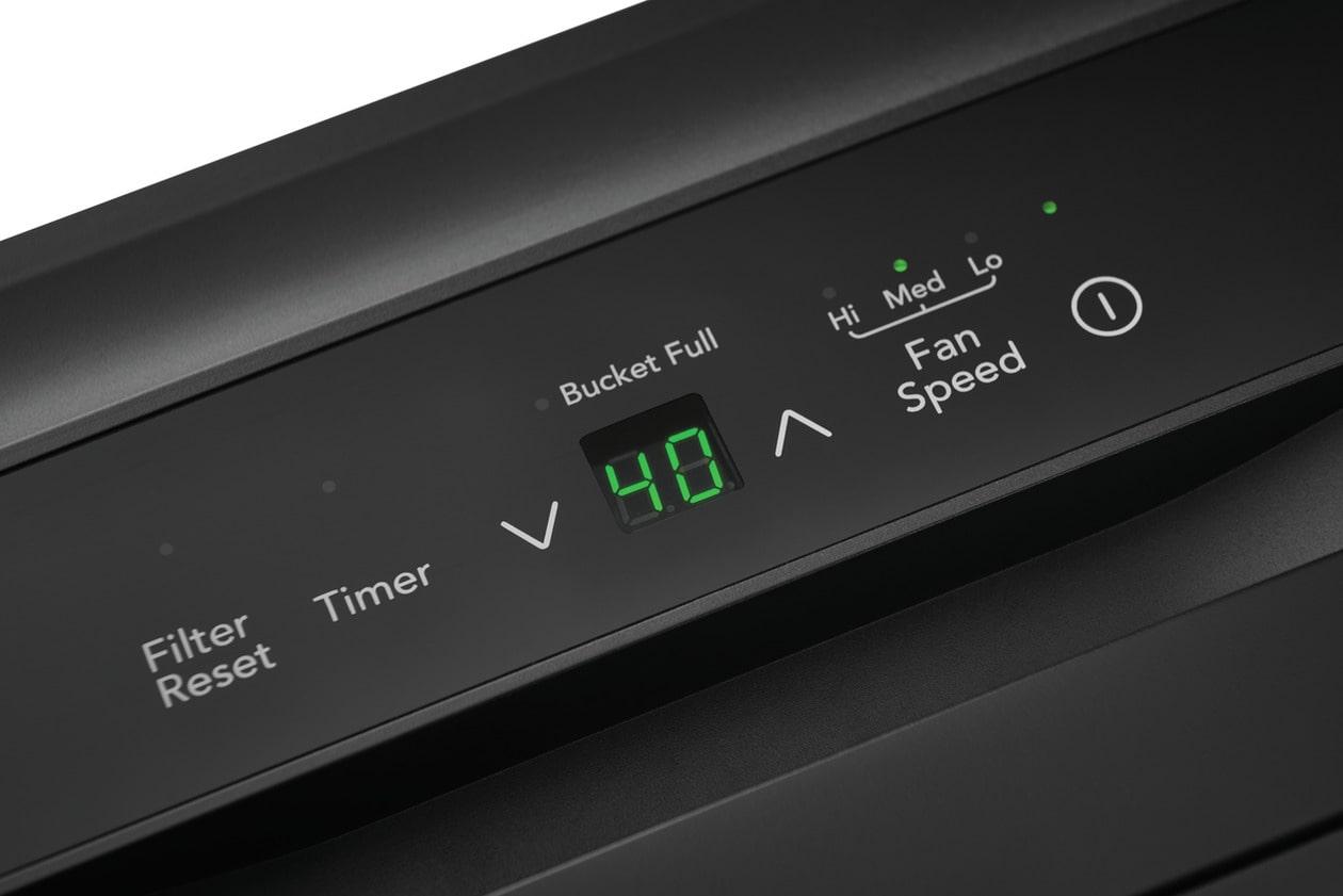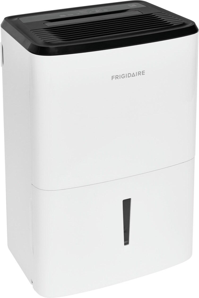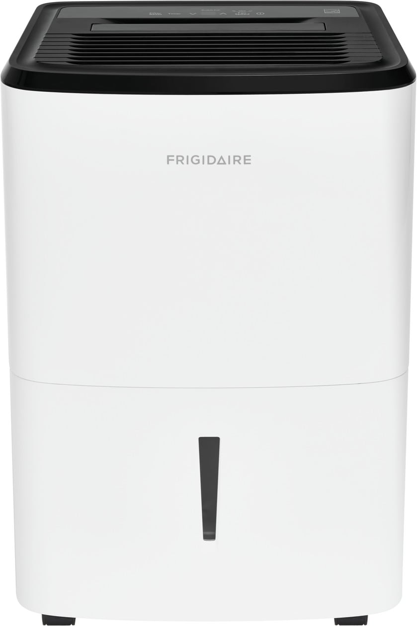 The Frigidaire 50 Pint Dehumidifier captures dust and helps manage your room's humidity levels with an Easy-to-Clean Washable Filter and Custom Humidity Control providing a cleaner, more comfortable home environment. The front loading bucket with carrying handle and splash guard makes cleaning hassle-free.